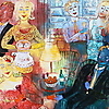 Oil on canvas, with the motif of a party. Image area 64 x 80 cm.