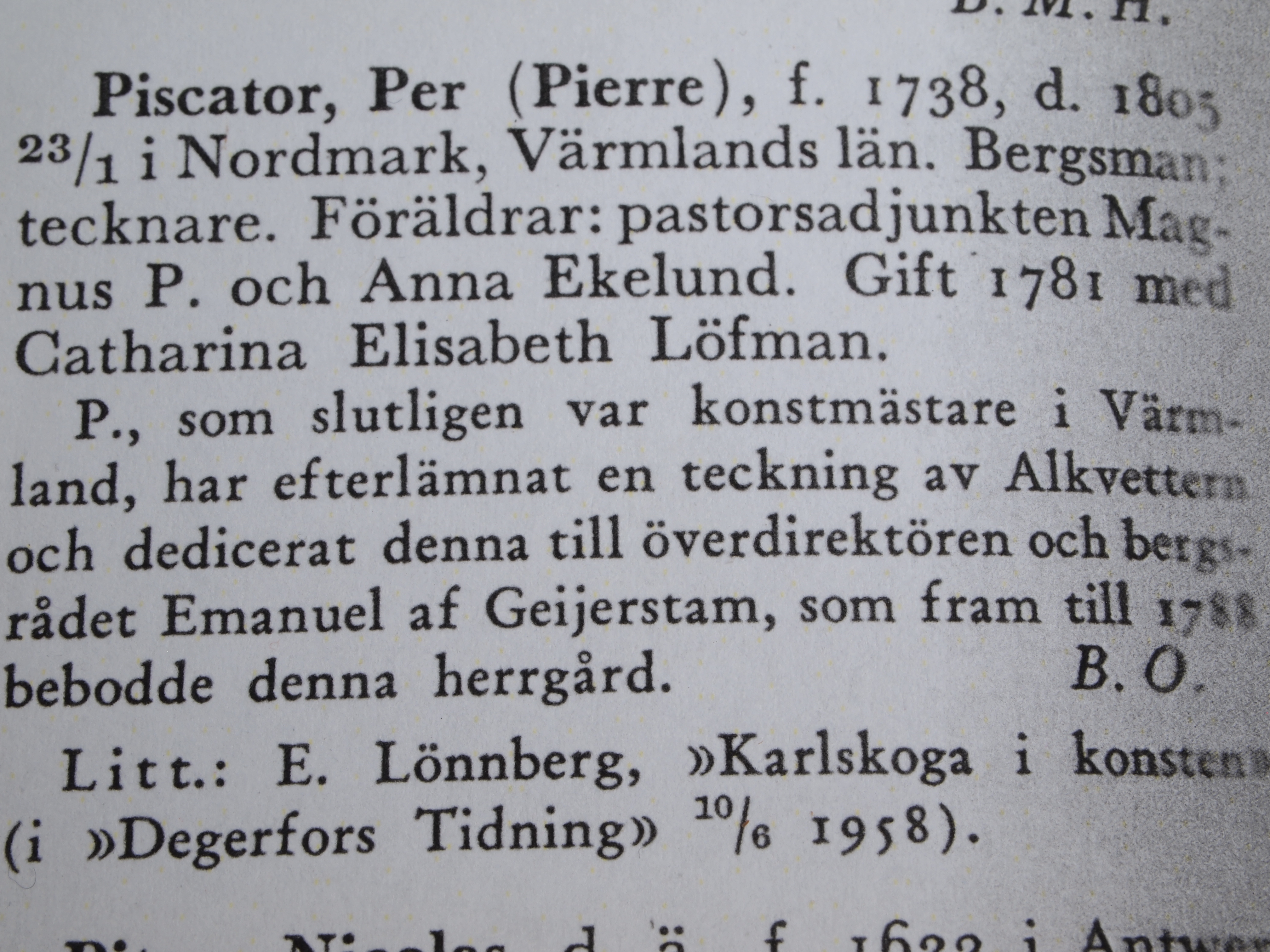 529564. PER PISCATOR. Ahlquittern, dedication Emanuel De Geijer, signed Pierre Piscator. Dated 1773.