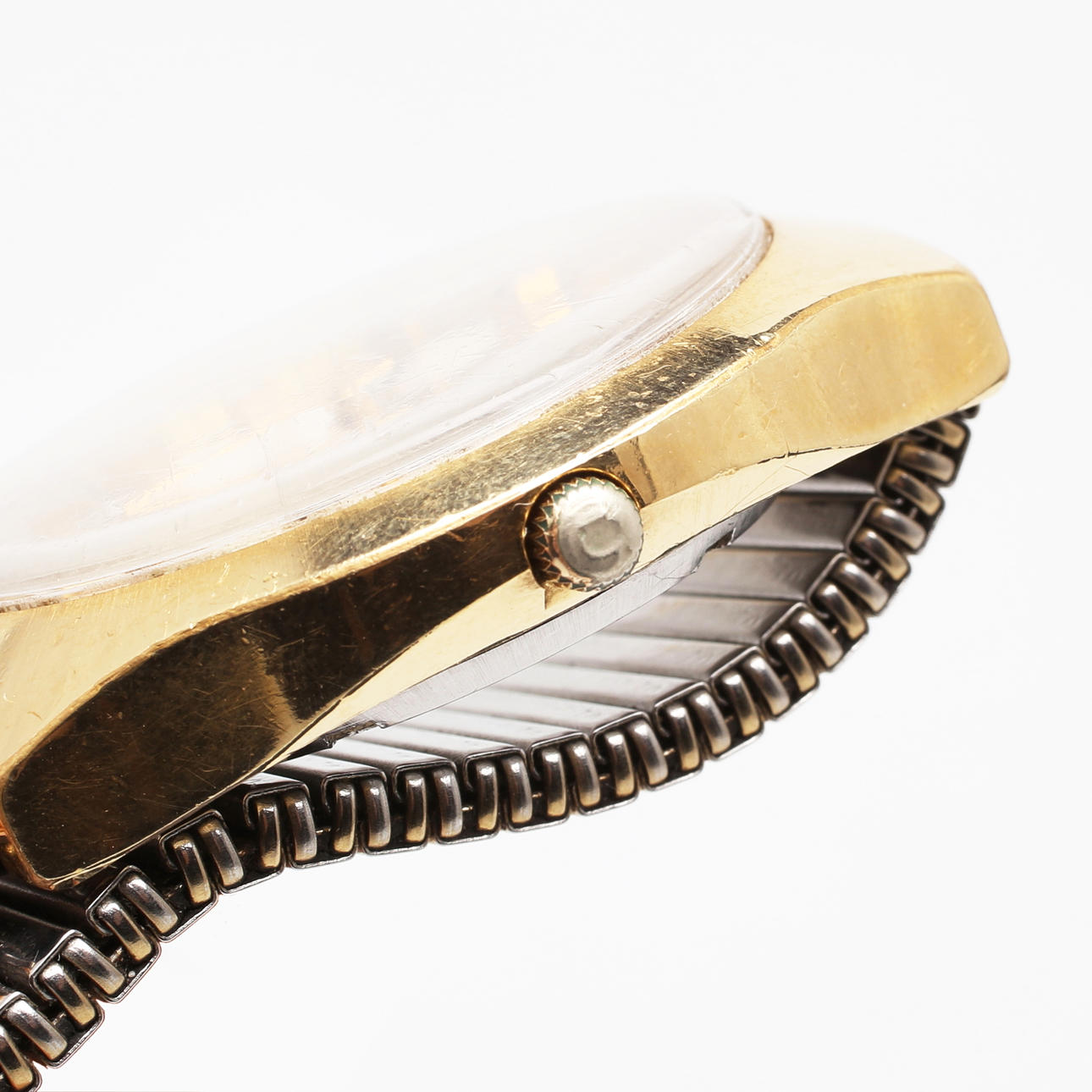 Normal wear and tear, the crown with heavy wear and possibly not original.