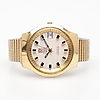 Men's wristwatch in gold on steel with date window and black bar indices, movement is caliber 1260, link not original.