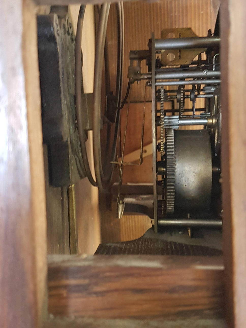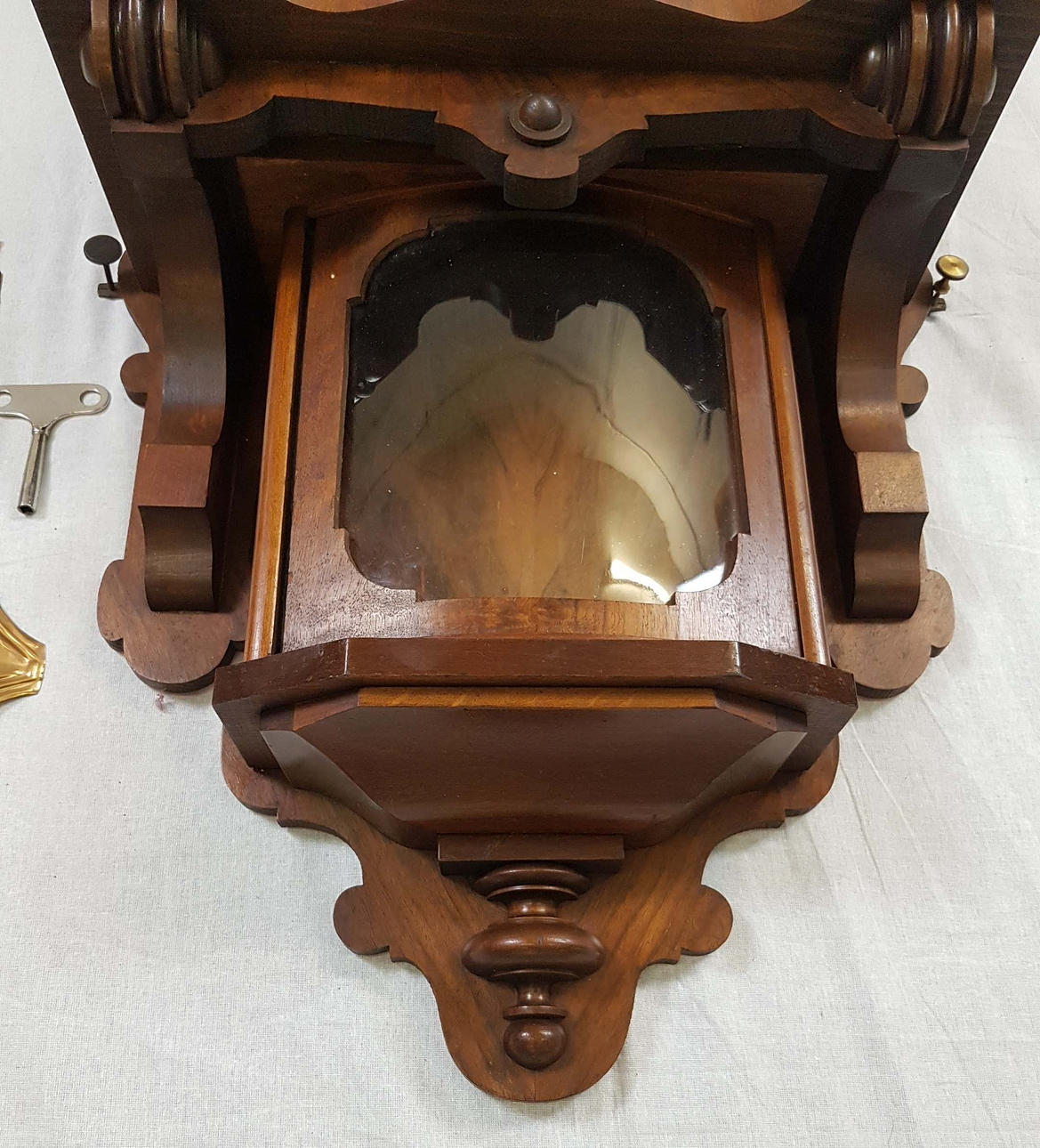 Wall regulator Art Nouveau, Gustav Becker, approx. 100x42x22cm, lavish decor, walnut case, turned, enamel dial with Arabic numerals, glazed.