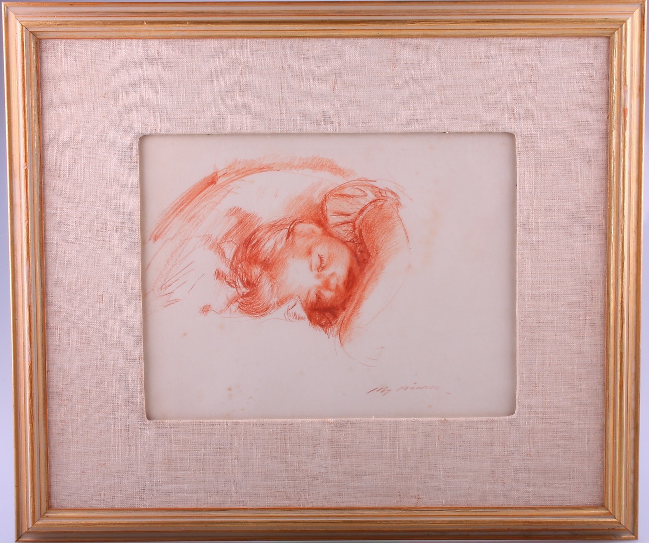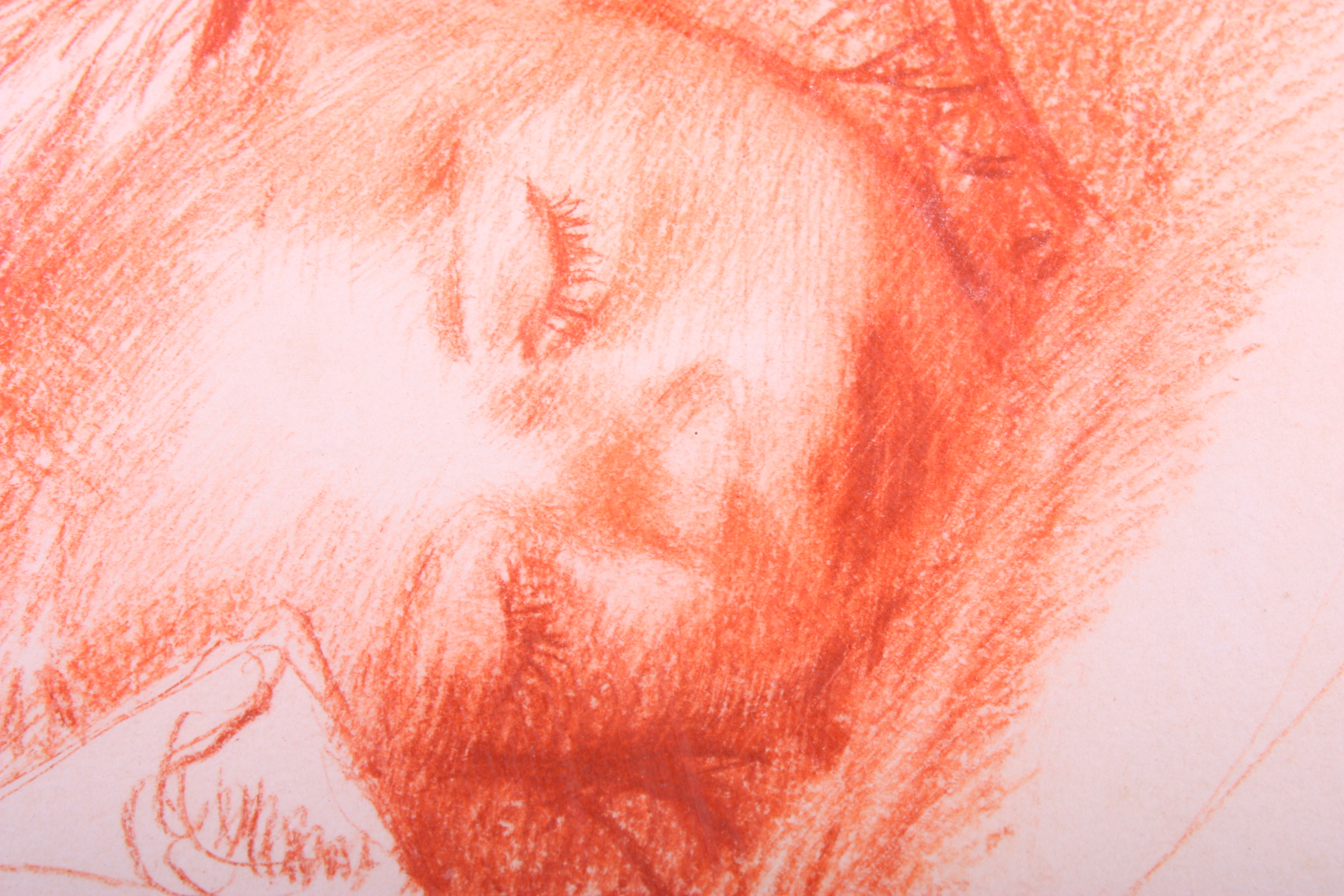 543688. STIG MÅNSSON. red chalk, sleeping child.