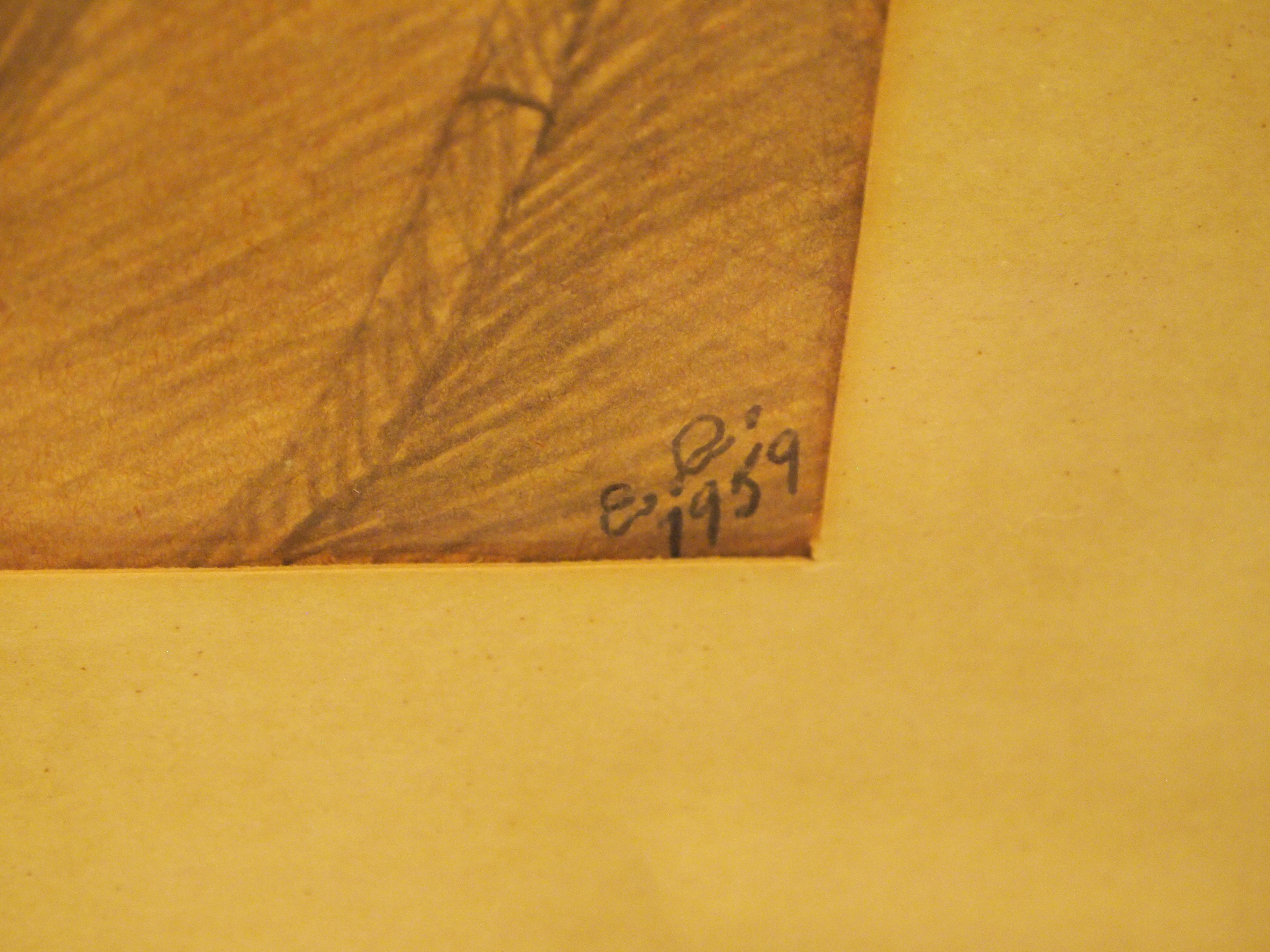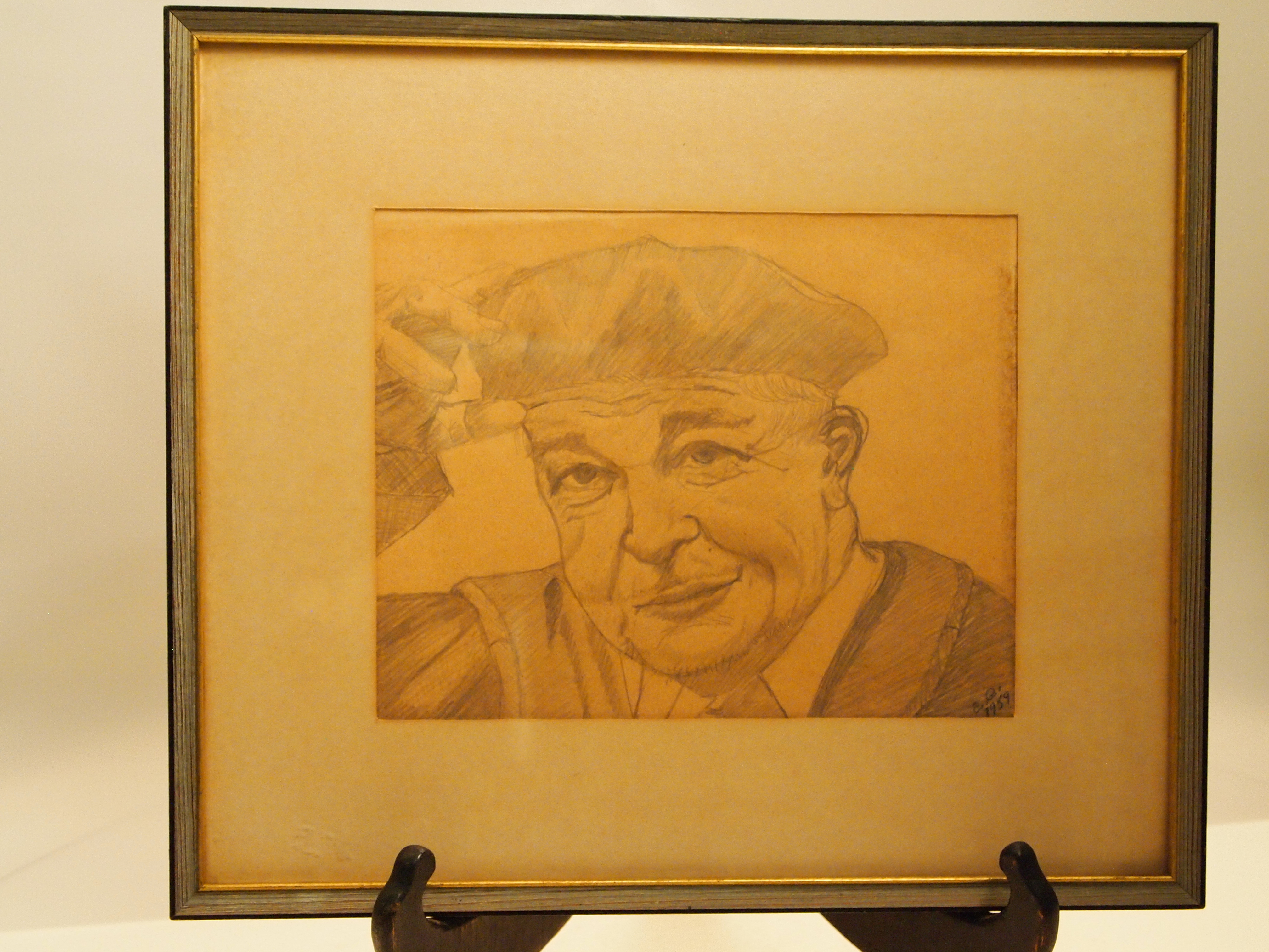 546258. OIDENTIFIERAD KONSTNÄR. Portrait Evert Taube, drawing, signed with initials and dated 1959.