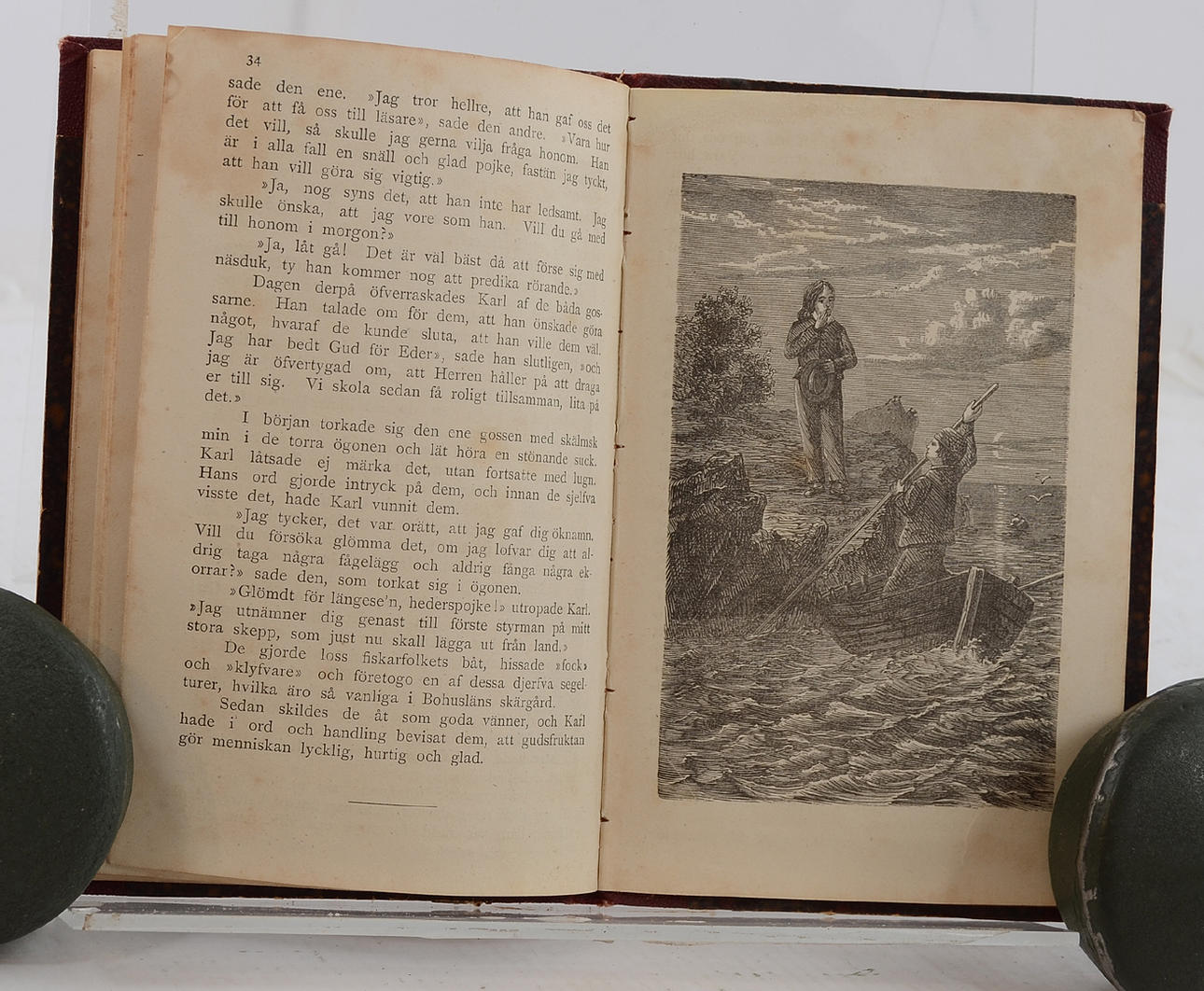 Time frame. Fiskargossen from Bohuslän: Time picture of Axel. 1 ed. Stockholm: Alb. Fagerberg, 1888, 40 pp. woodcut illustrated. Bound in contemporary single ball binding, with both booklet covers bound in.