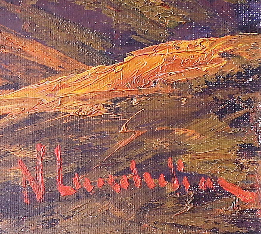 559657. OIDENTIFIERAD KONSTNÄR. Sunset, oil on canvas, signed N Lundström.