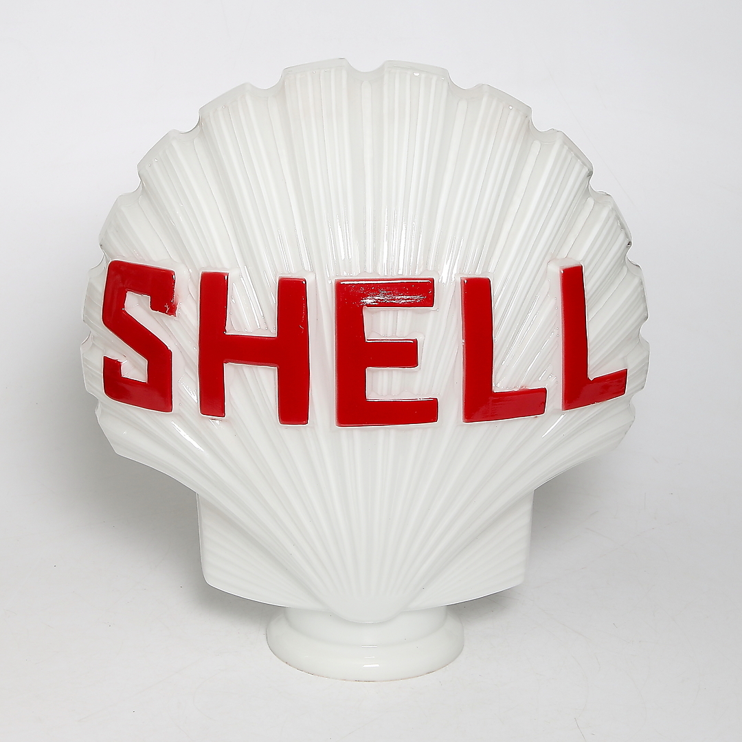 559899. ADVERTISING SIGN, glass, Shell pump globe/top, 1930s.