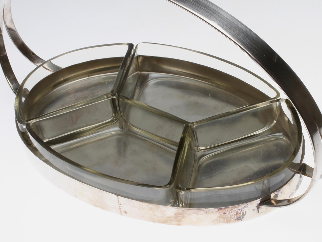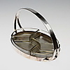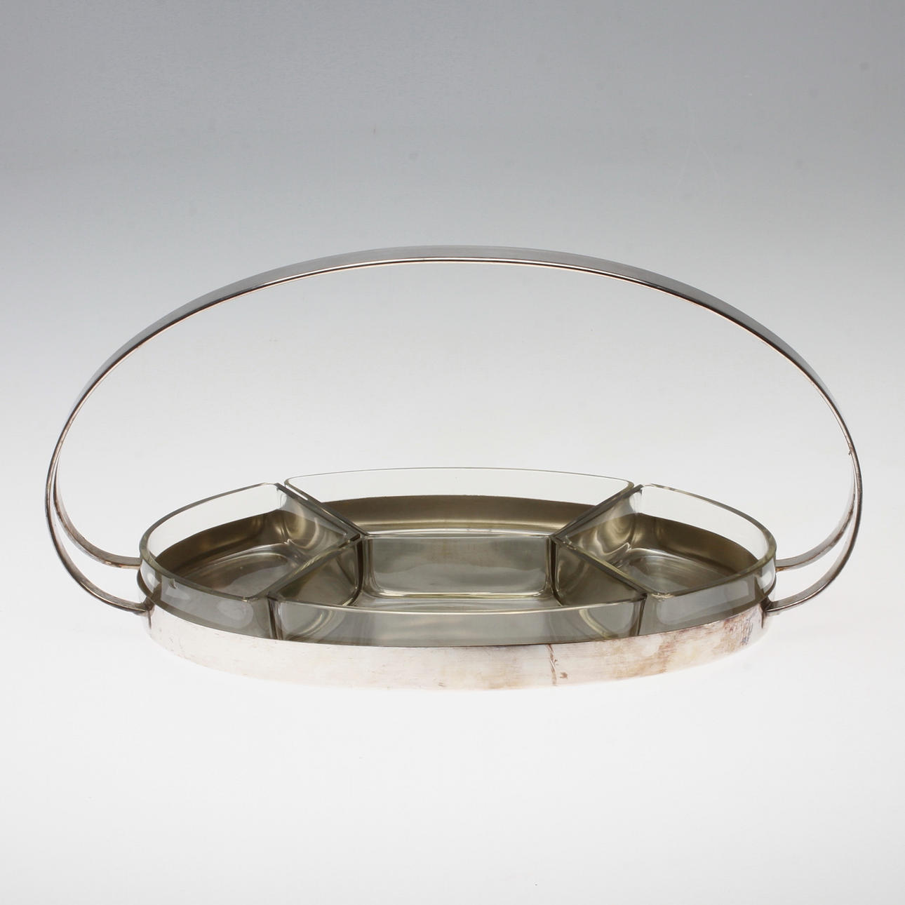 Oval shape. With four inserts of glass. Length 38 cm, width 20 cm, height 19 cm.