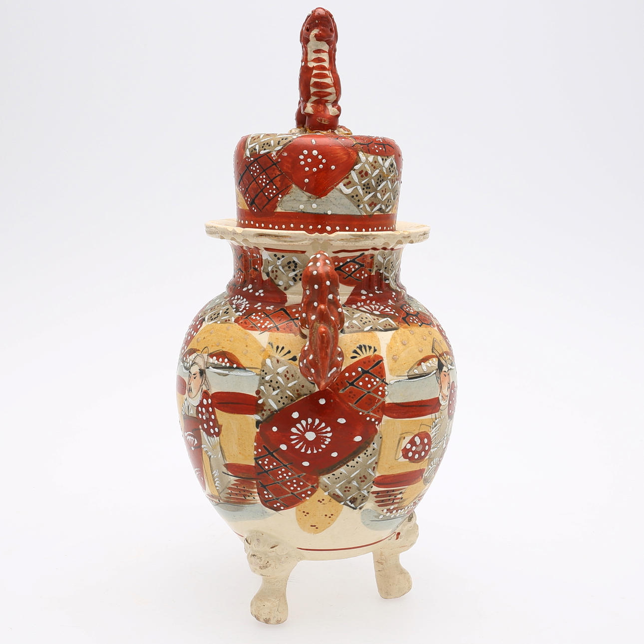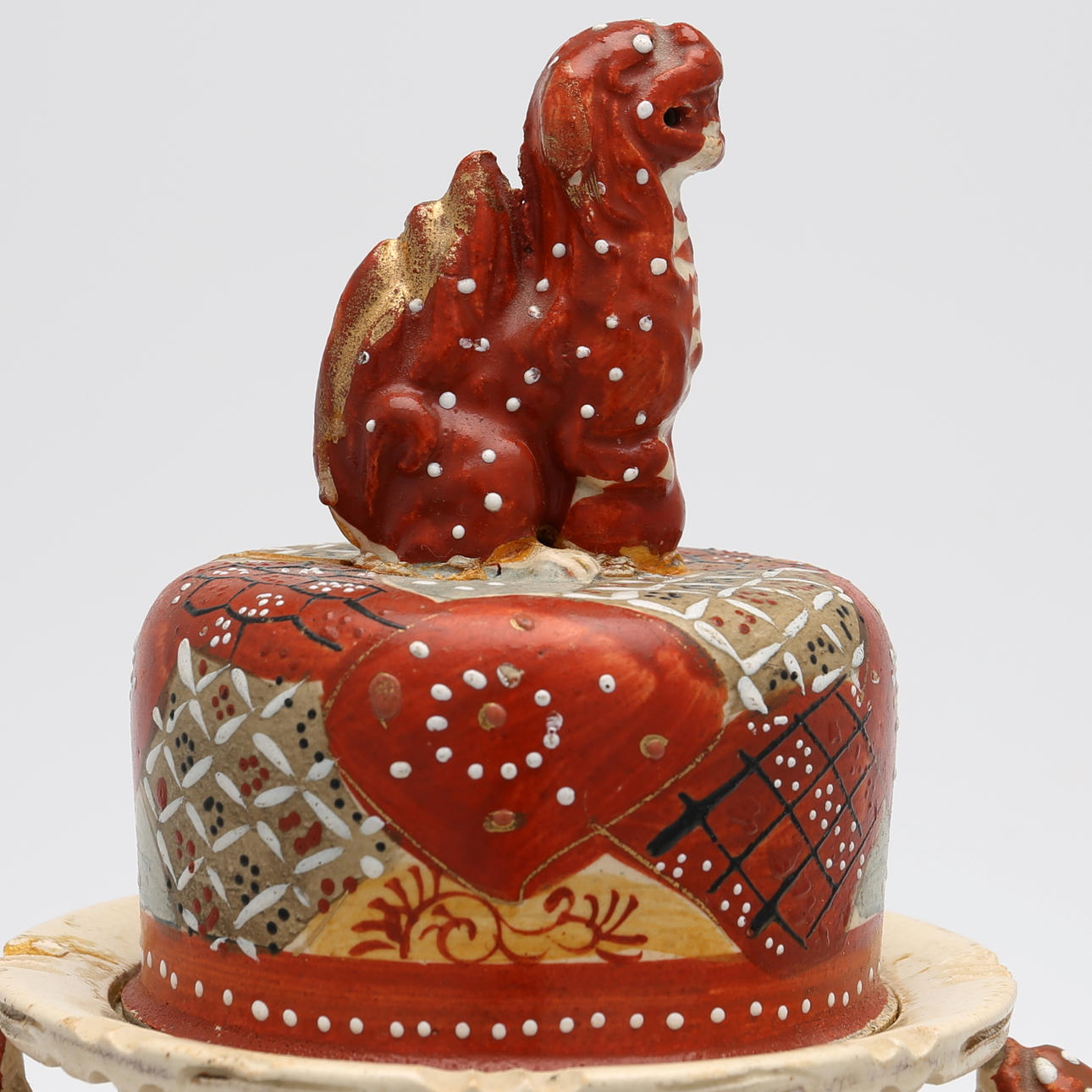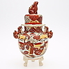 Cracks in cover and urn, glued.