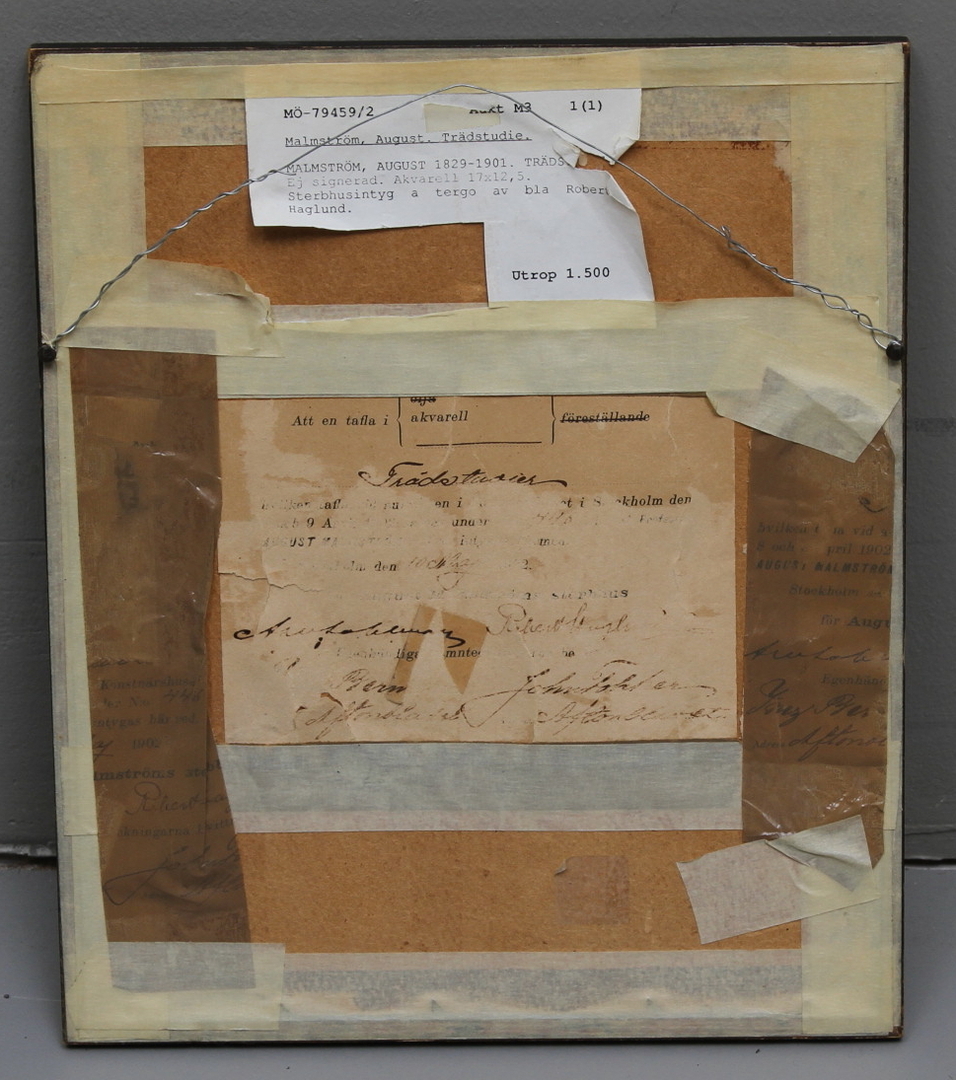 56197. ATTRIBUTED TO AUGUST MALMSTRÖM. "Wood study", watercolor, unsigned.