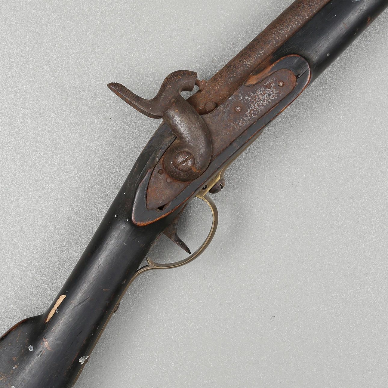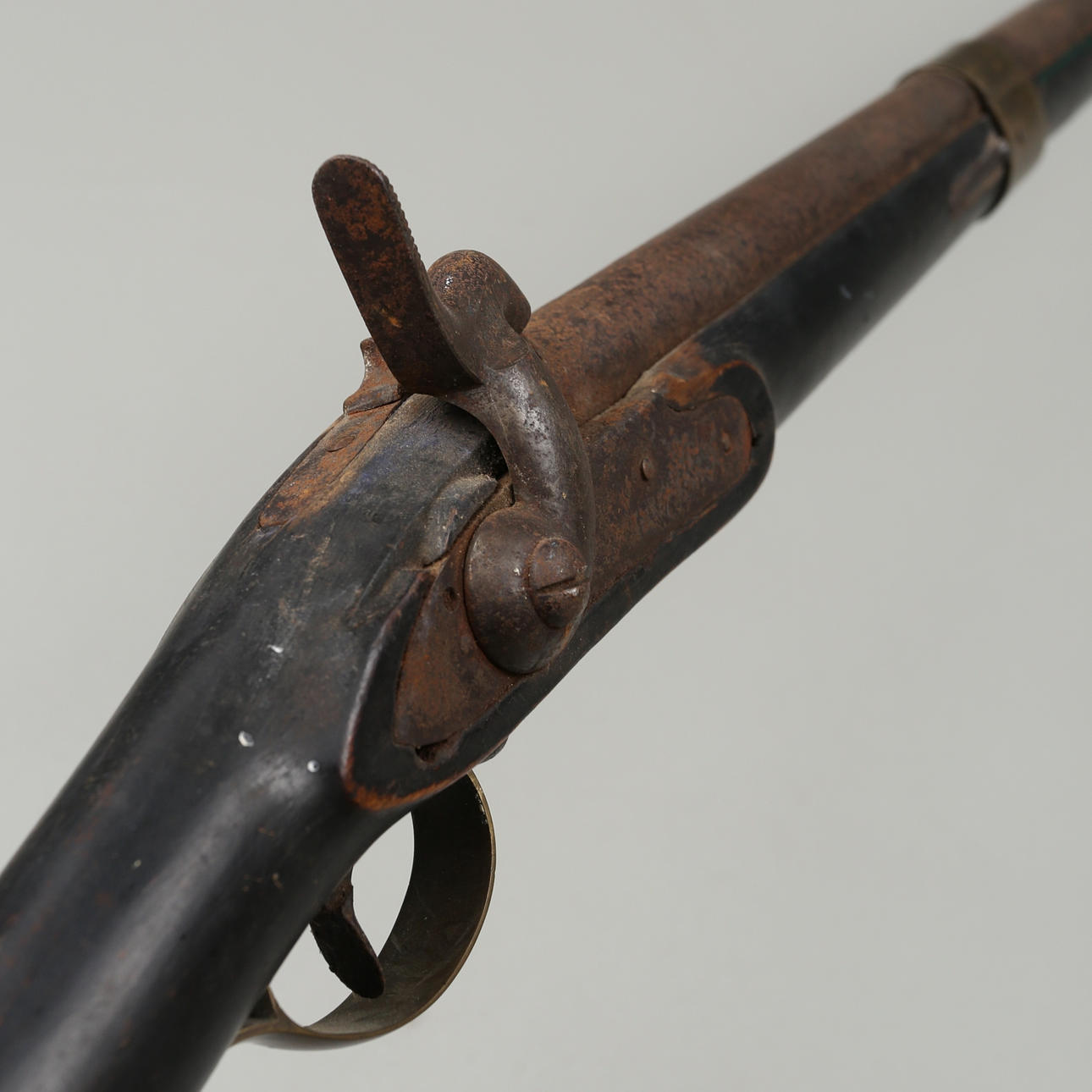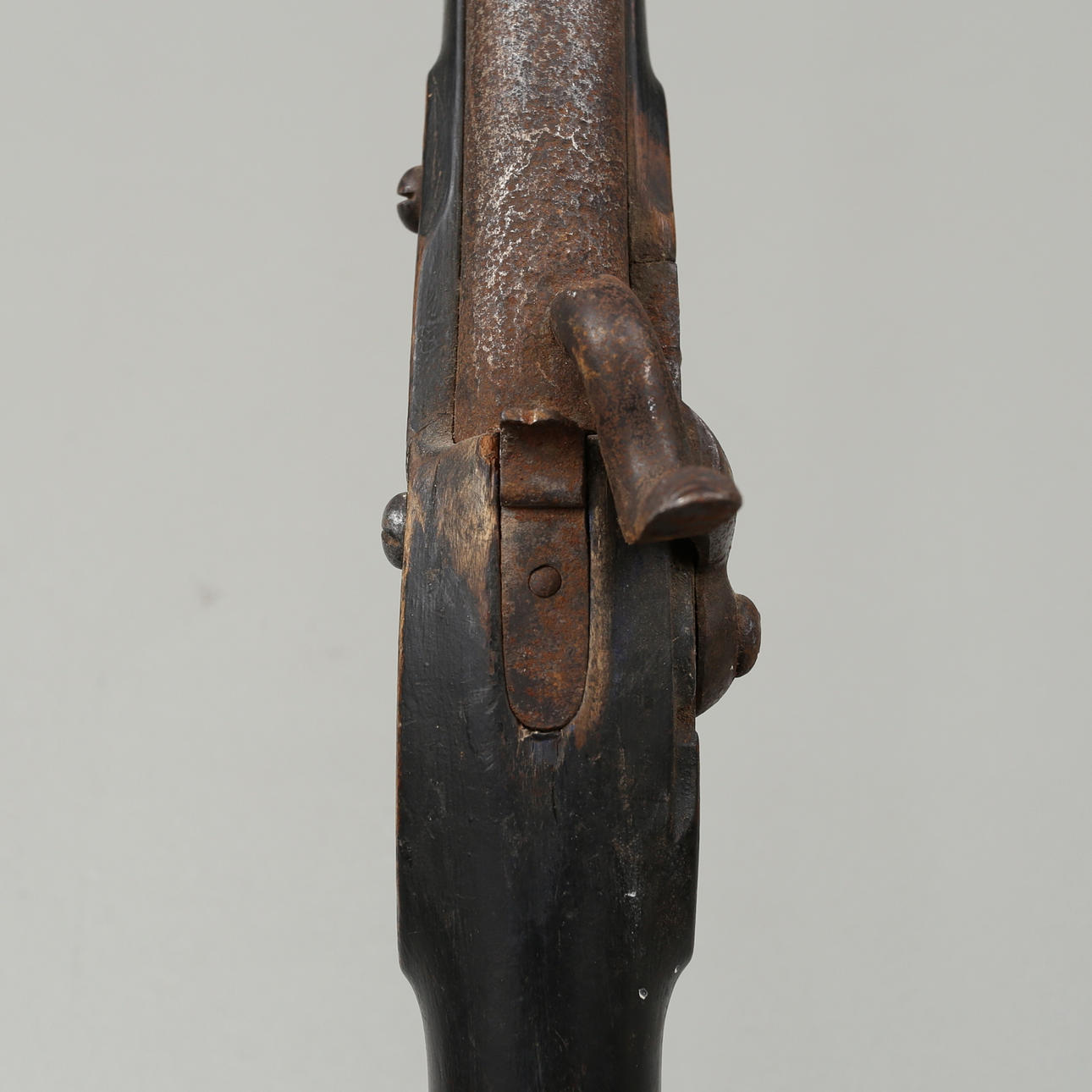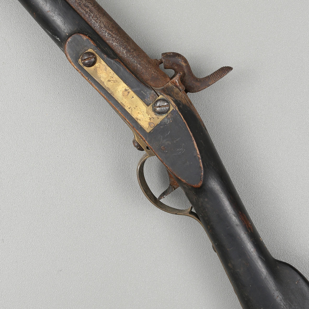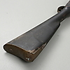 Birch stock with brass fittings, stock and barrel shortened Length: approx. 138 cm.