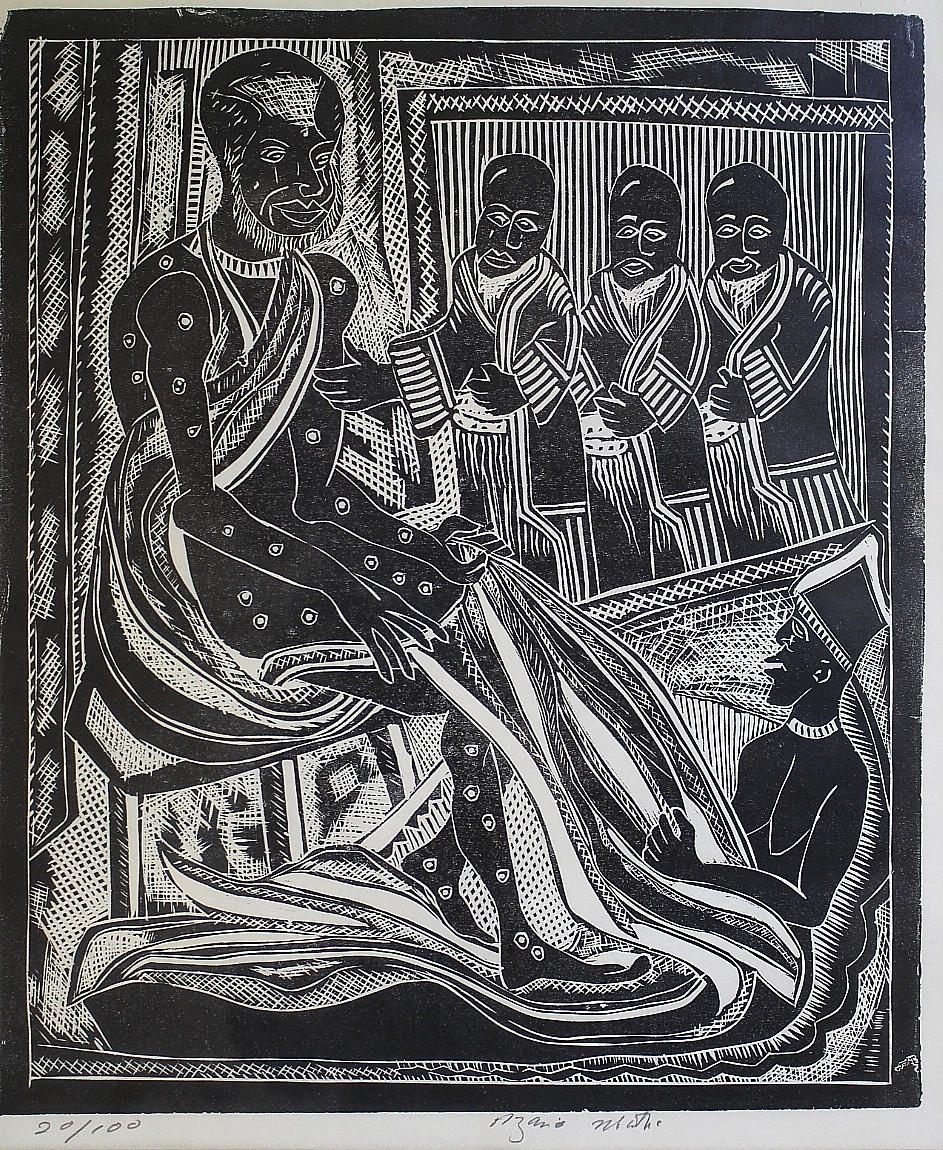 AZARIA MBATHA. Lithography "5 Men" signed & numbered 20/100.