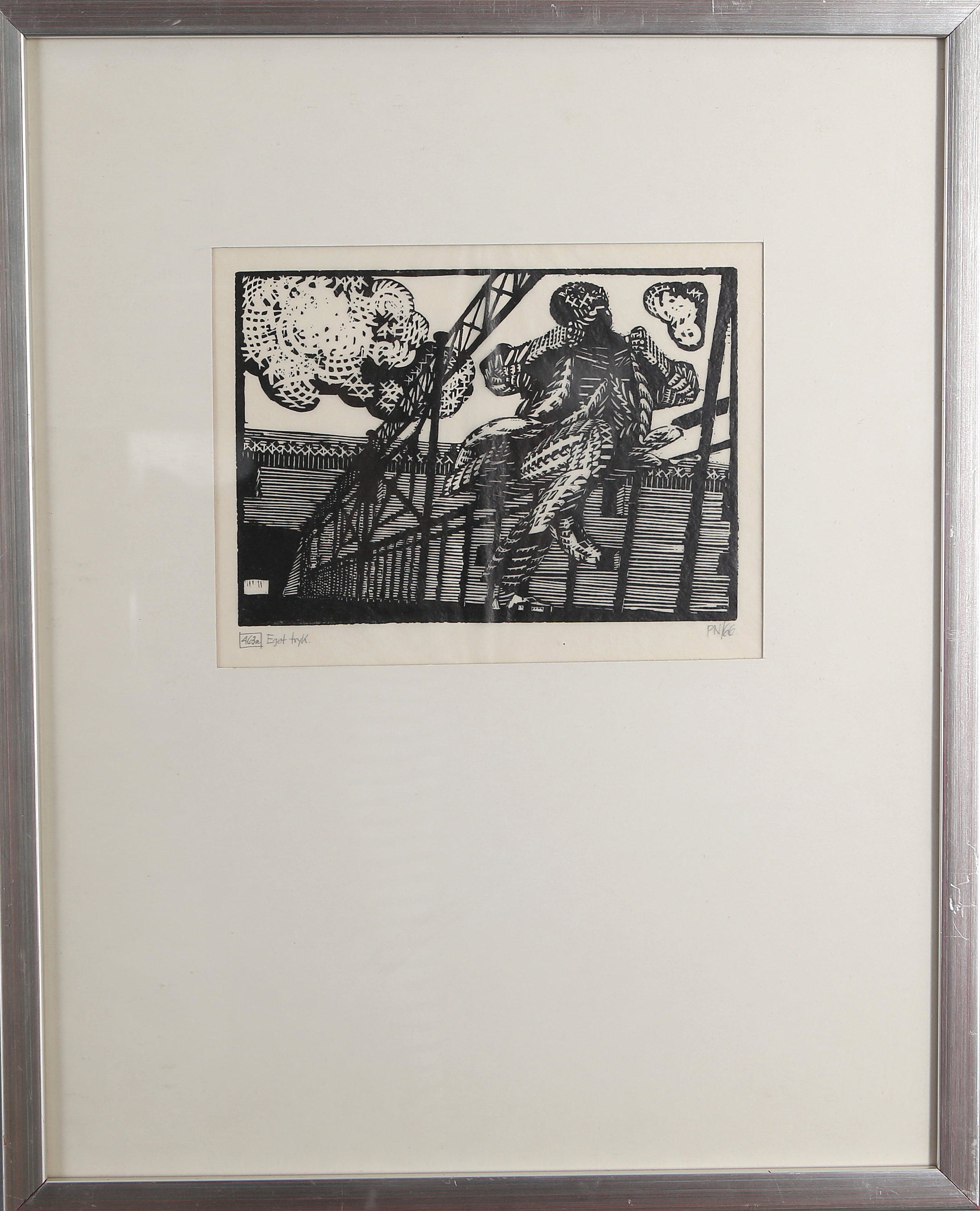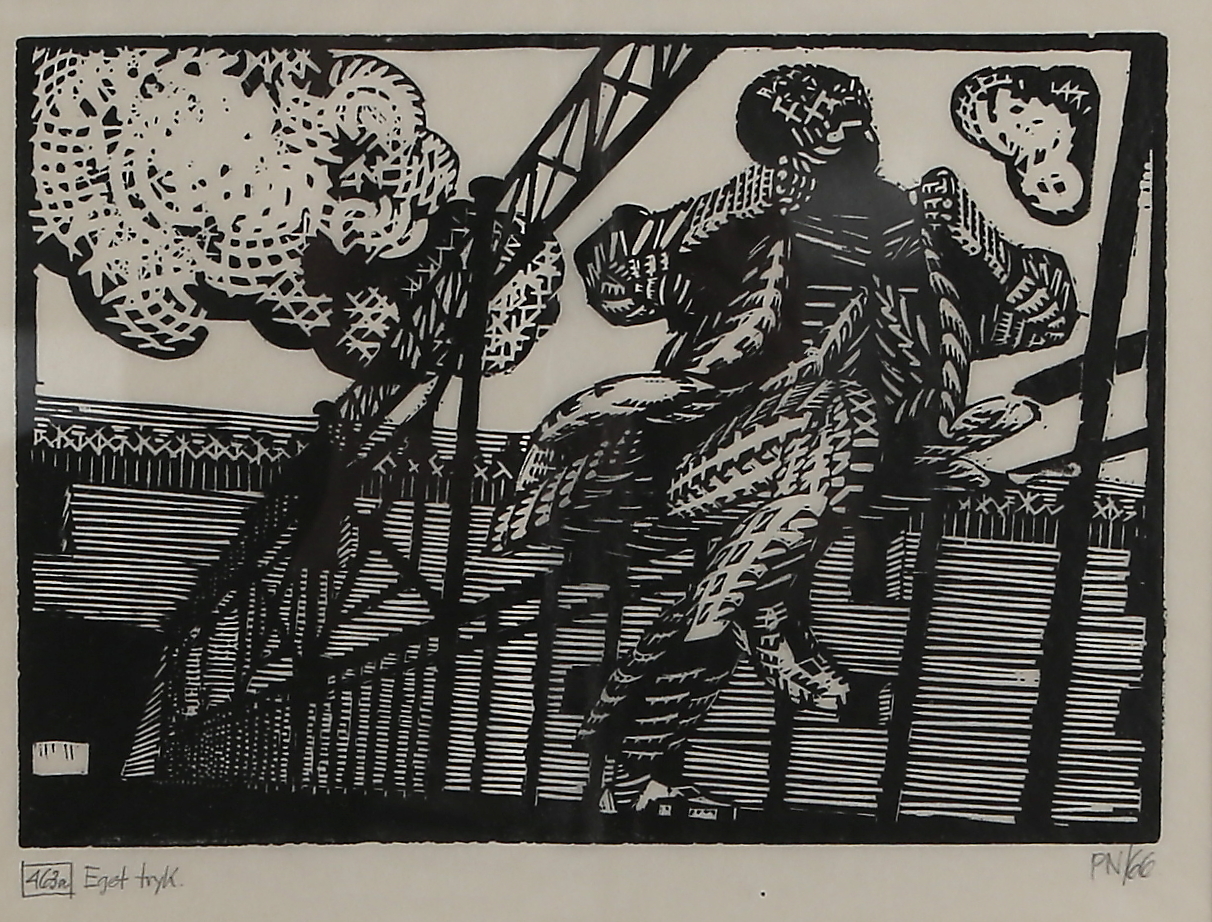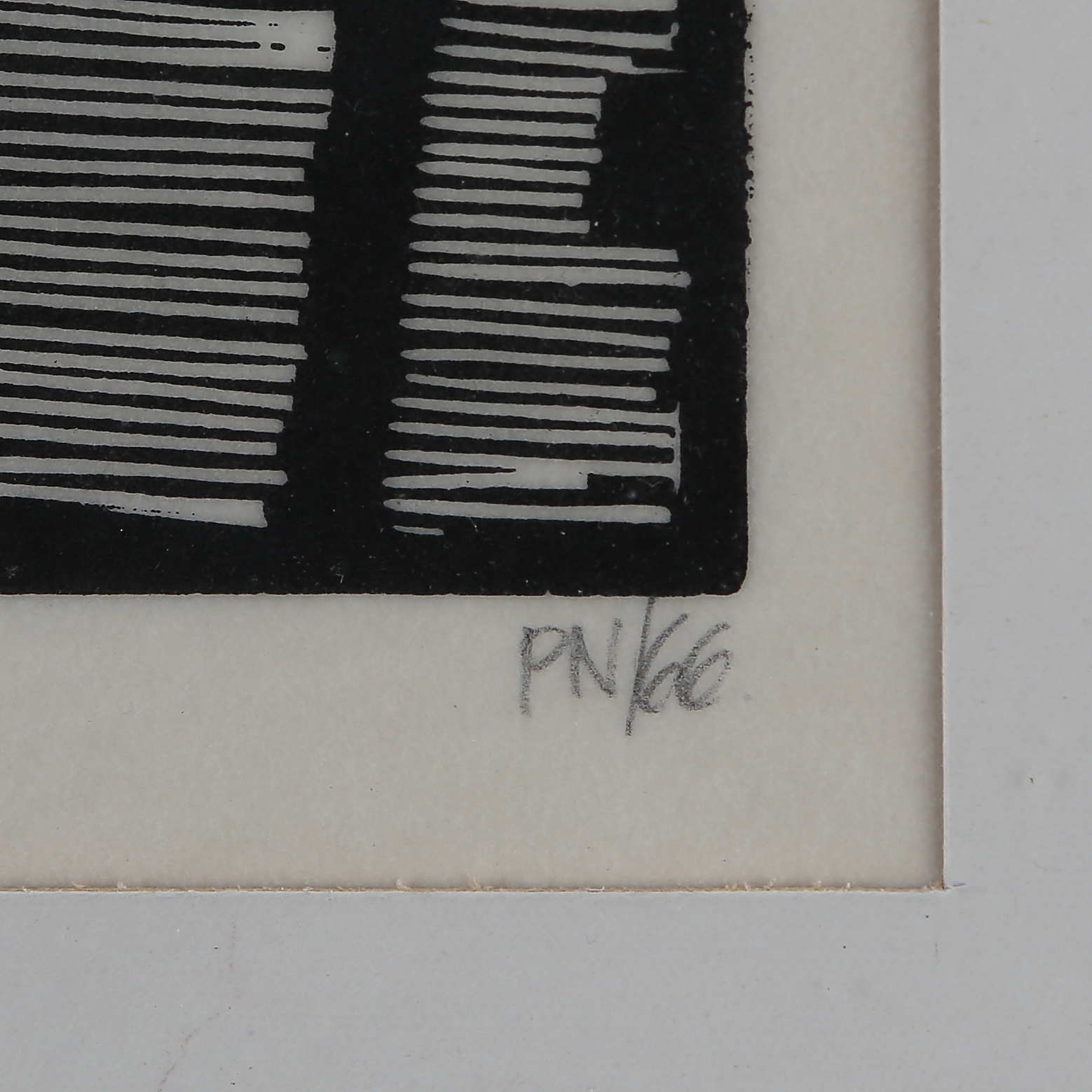 575640. PALLE NIELSEN. Composition, linoleum cut, monogram signed, dated 66, own print.