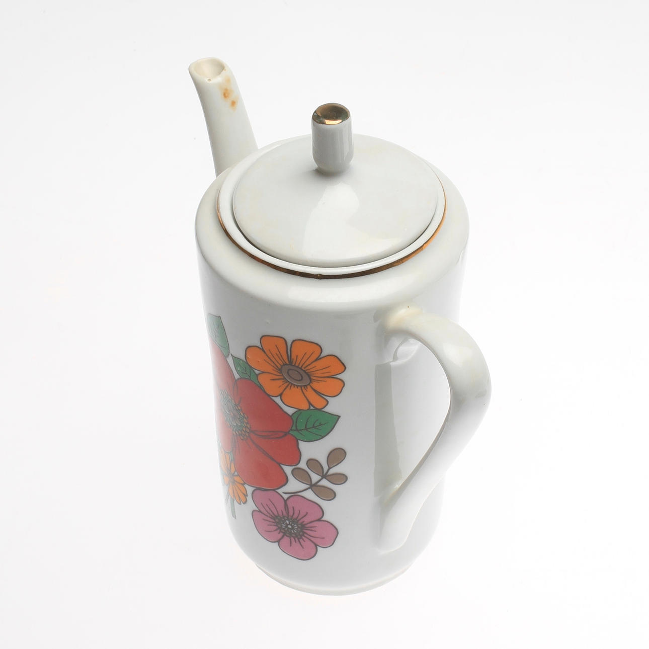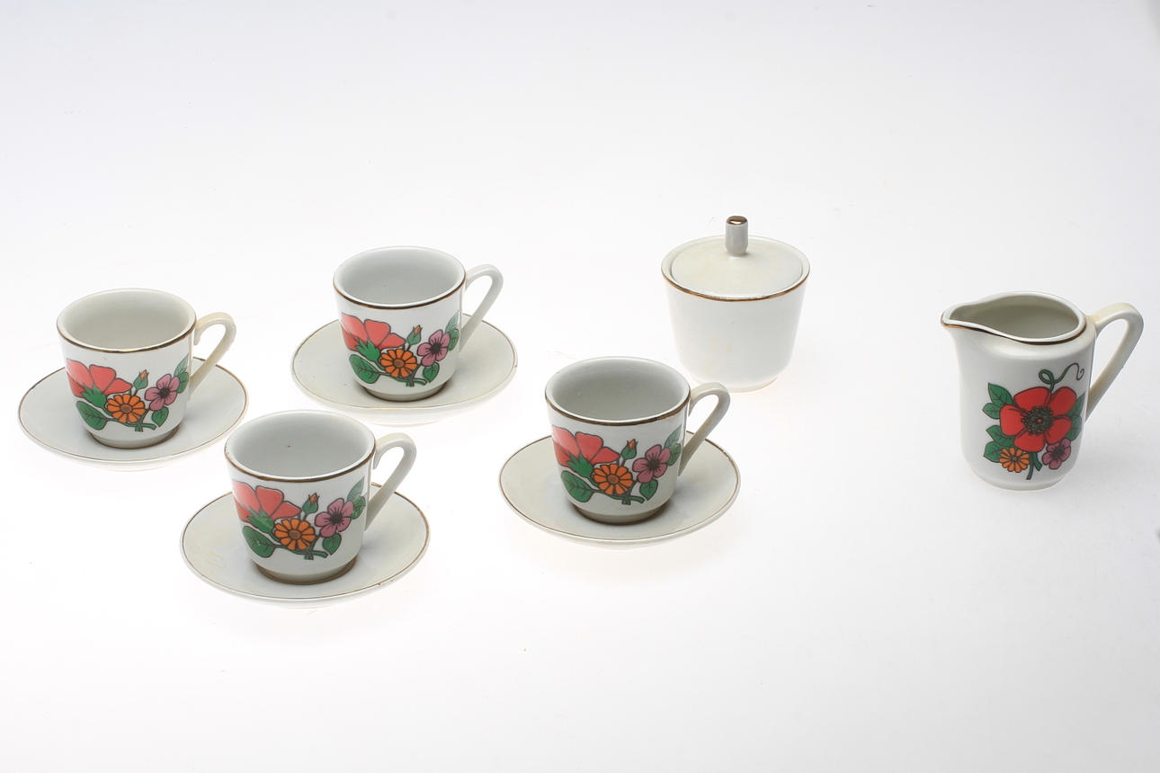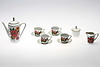 4 cups with saucers and sugar bowl, coffee pot and creamer.
