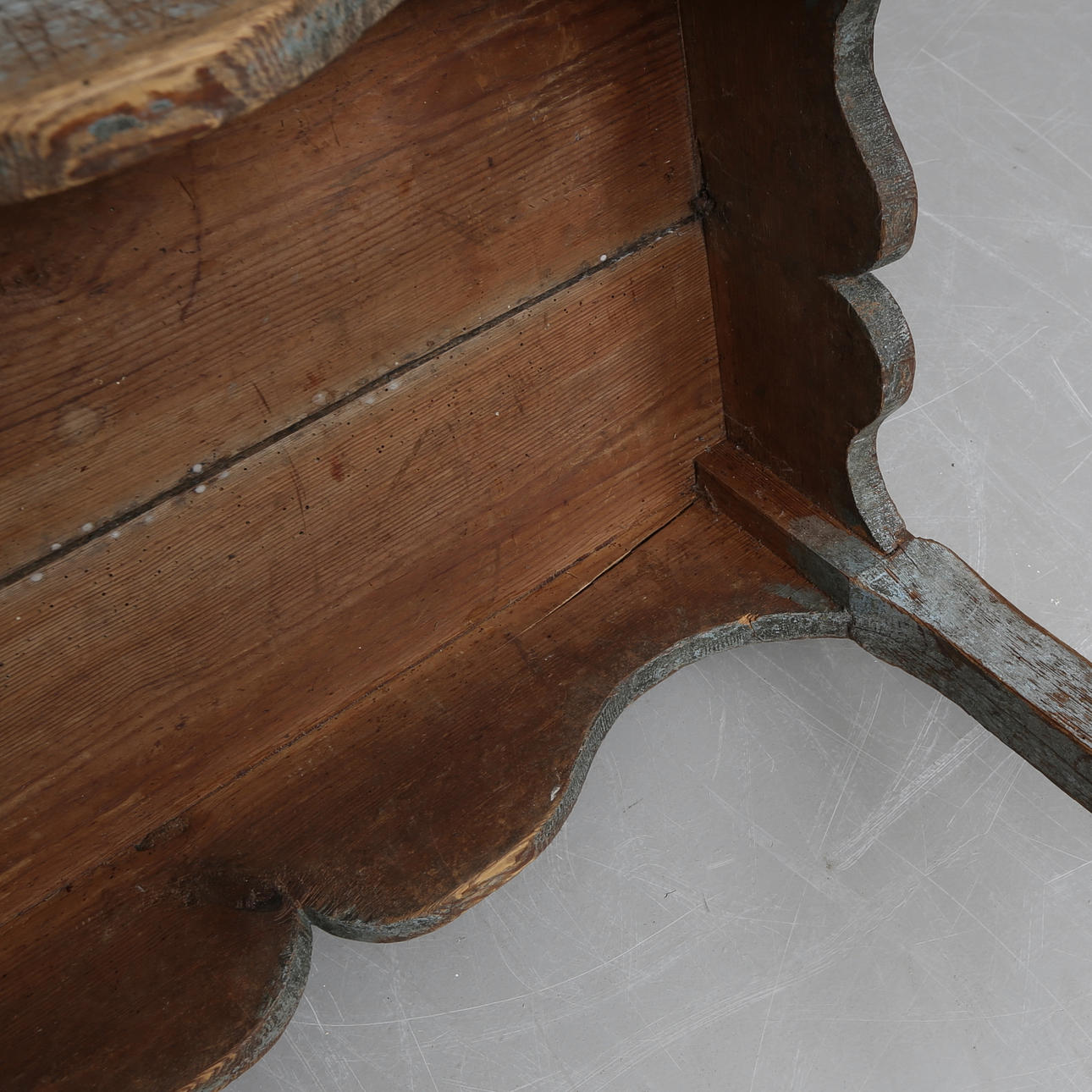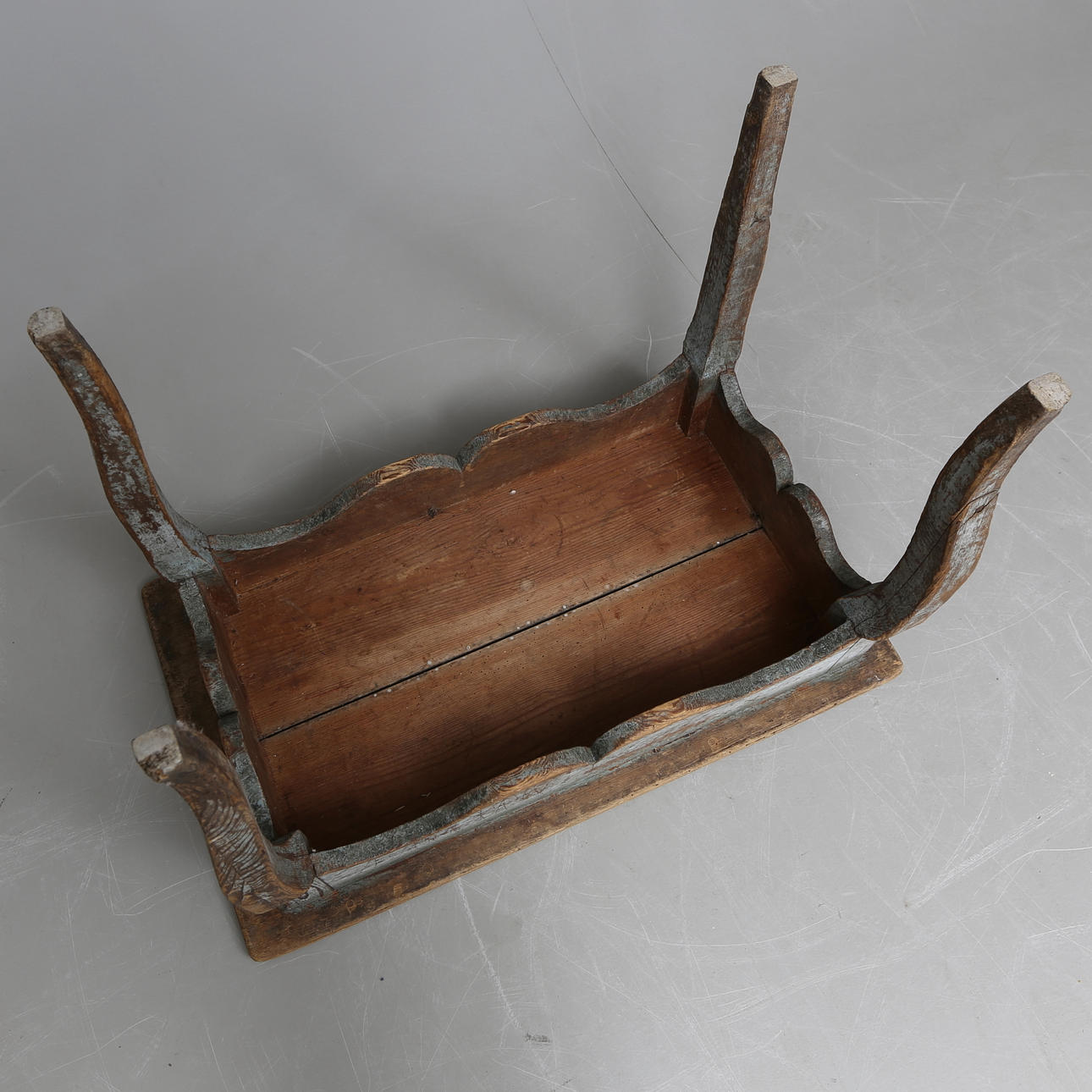 Wear, worm tongue, cracks, stains. Addendum in the item description, Crack/repair on legs, probably later undercarriage.