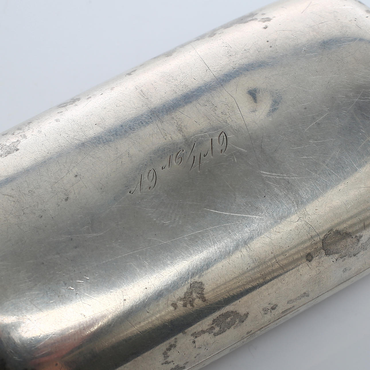 Wear. Cracking at hinges. Owner engraving.