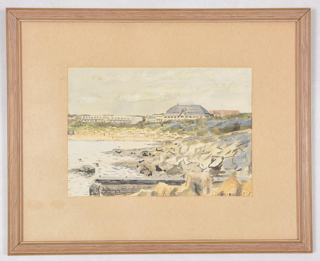 Coastal motif, signed and dated 1958, 20x28 cm.