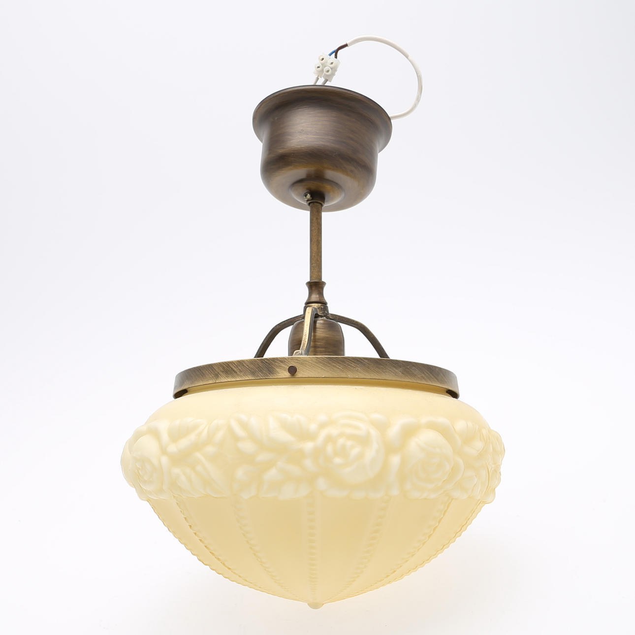 Ceiling lamp glass and metal, height approx. 40 cm, diameter approx. 26 cm.