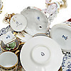 4 figurines, 2 bowls, 2 smaller dishes, 4 mocha cups with saucers, Meissen saucers.