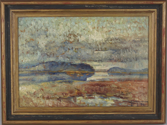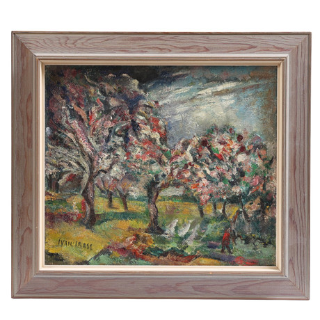 596837. BERNT BÖCKMAN. Landscape motif with chair, color lithography, signed and numbered 208/225.