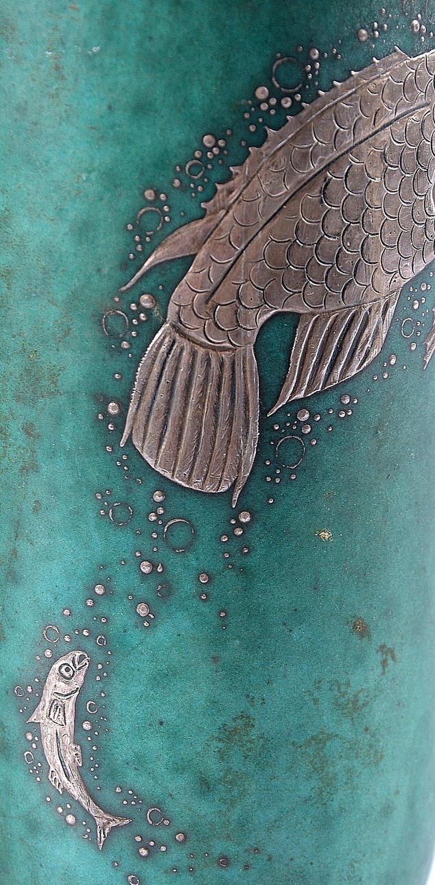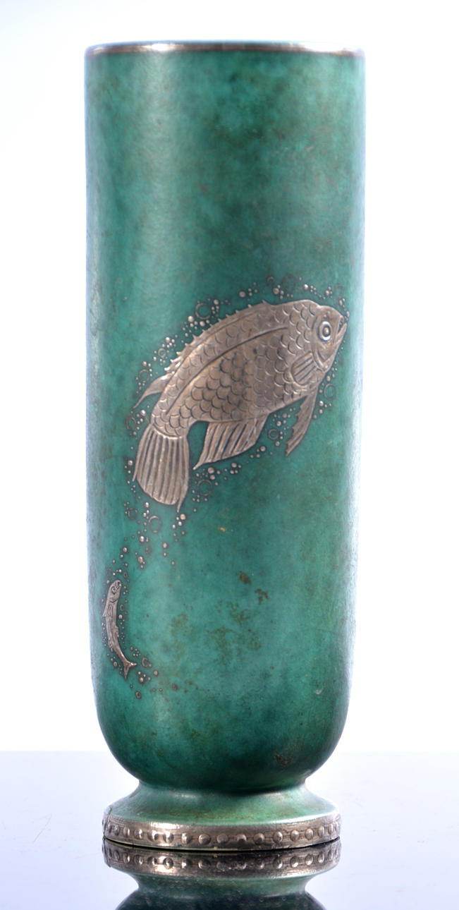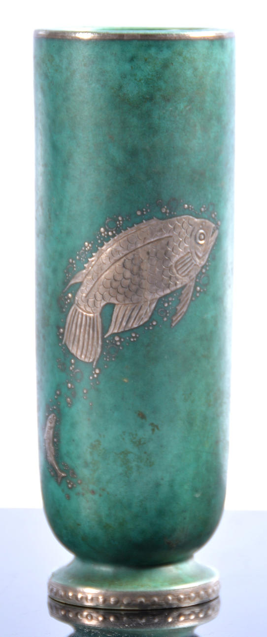 Fish decoration, marked underneath Argenta Gustavsberg 1029 IV, K. Height 21.5 cm, diameter 7.5 cm.