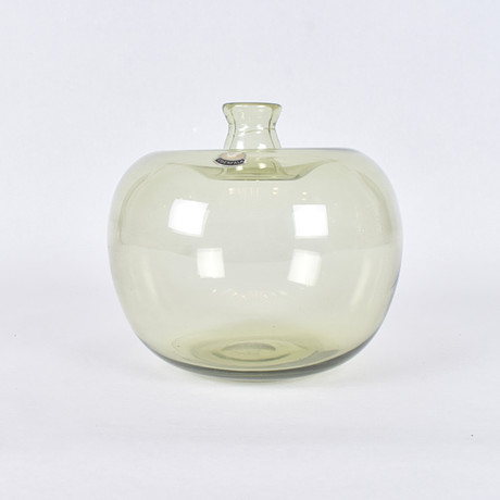 Art glass bottle/carafe in Erik Höglund's typical style in bubbly green glass A delicious green glass lady with a face like a stopper.