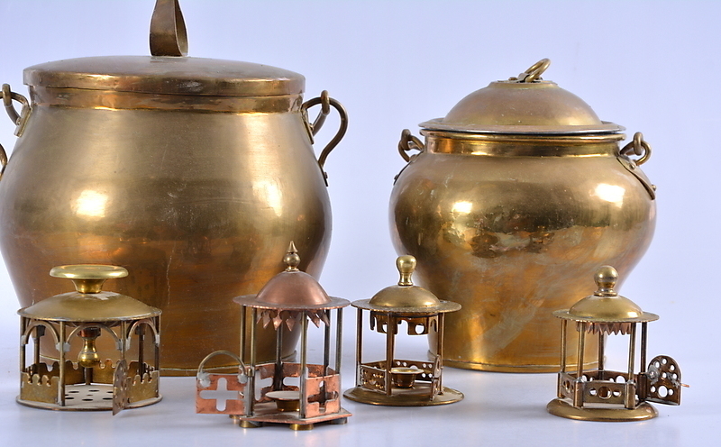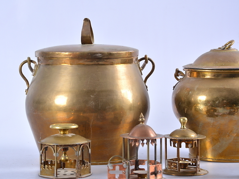 600044. BRASS OBJECTS, 6 parts, 1900s.