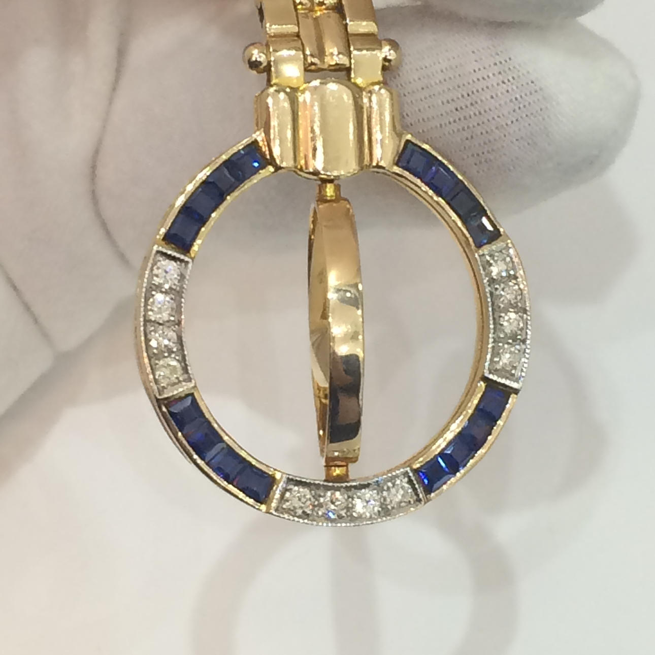 The key ring is set with calibre cut sapphire's which total approximately 1.00 carat.