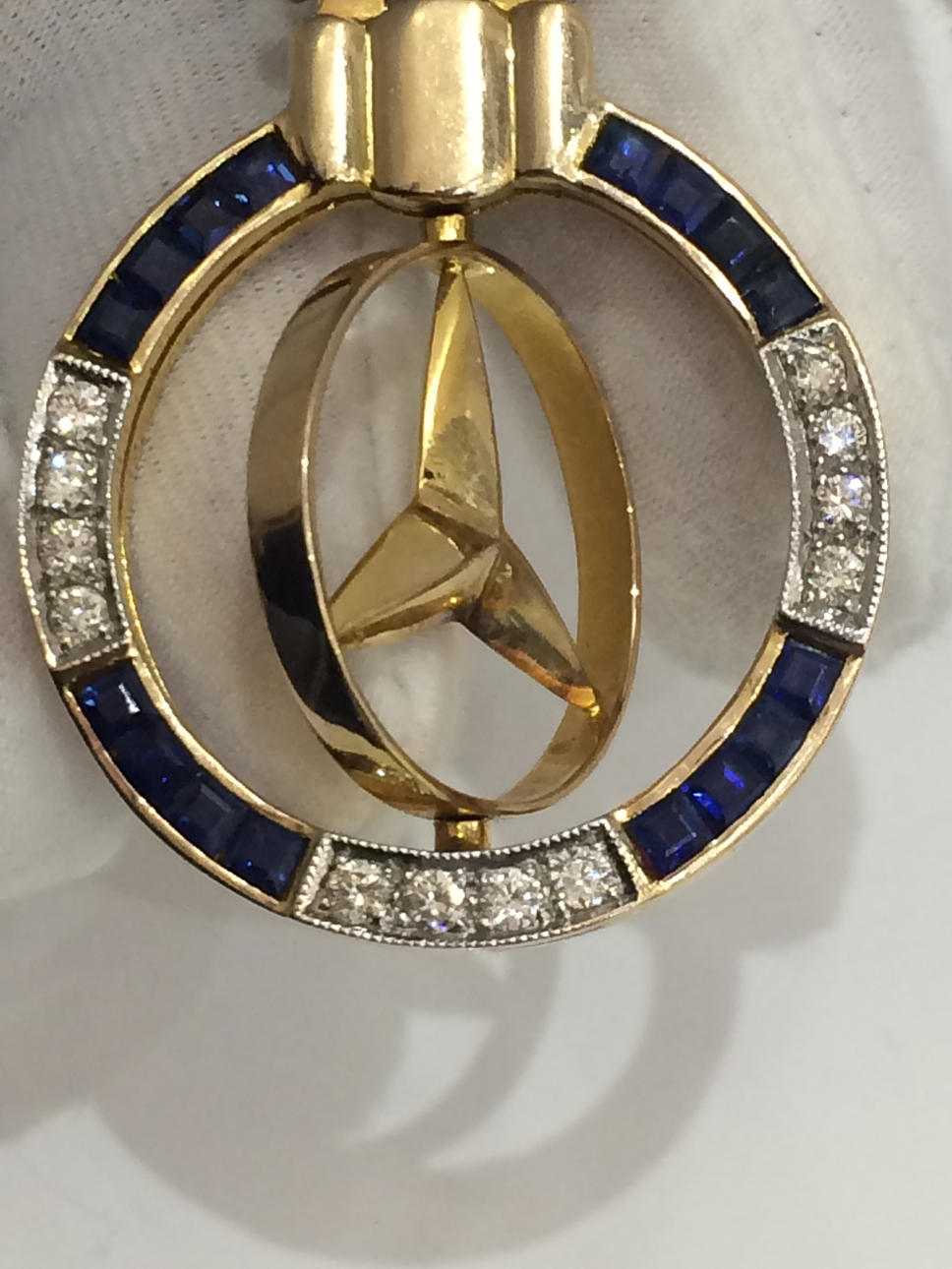 This Mercedes key ring is unique, handmade and hallmarked 14 ct yellow gold.
