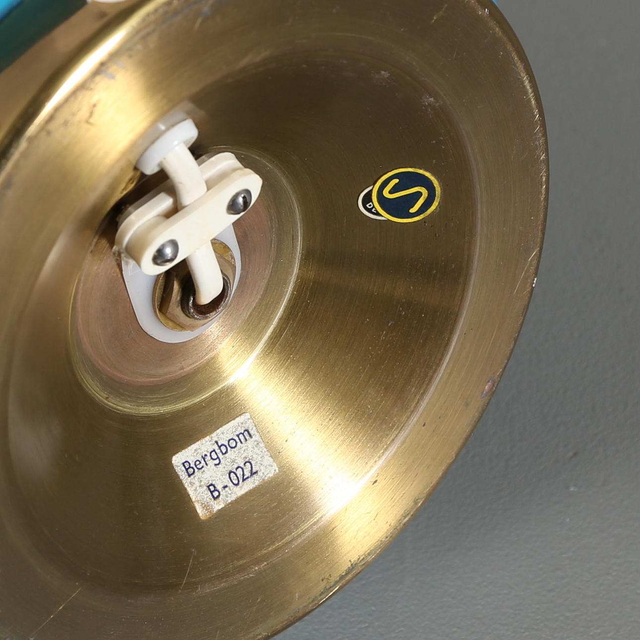 Foot in turquoise glass with brass edge. Marked Bergboms.