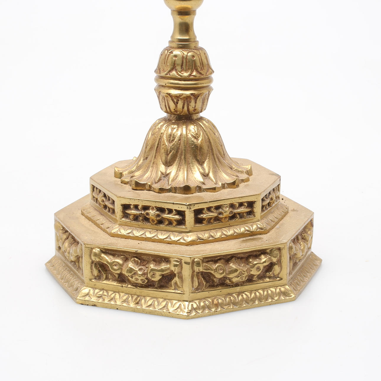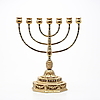 SEVEN-BEARED CANDLESTICK, Menorah in brass, 1900s.