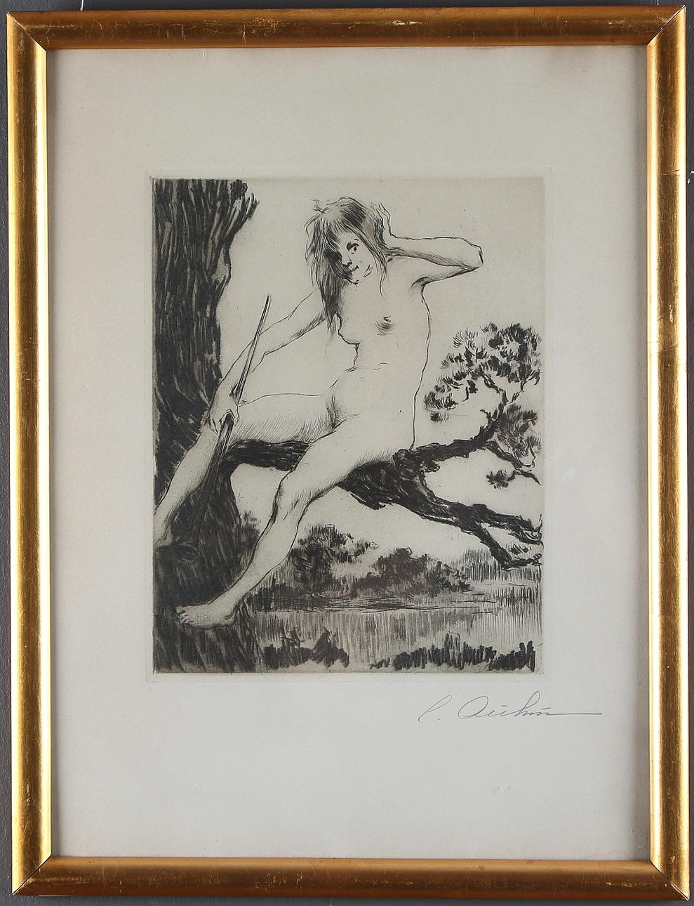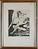 615385. CALEB ALTHIN. 2 pcs. horses and creatures, drypoint etchings, signed.