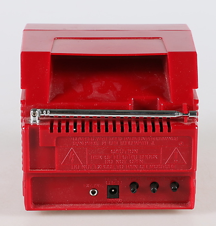 TV with socket for headphones, external antenna, DC 12V Settings with knob for contrast, bright and V-hold Length 14.5, width 15.5, height 12.5 cm.
