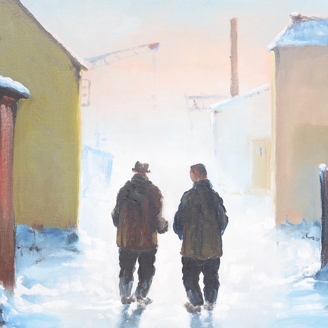 624830. ALLAN KARMS. Wintery street motif with figures.