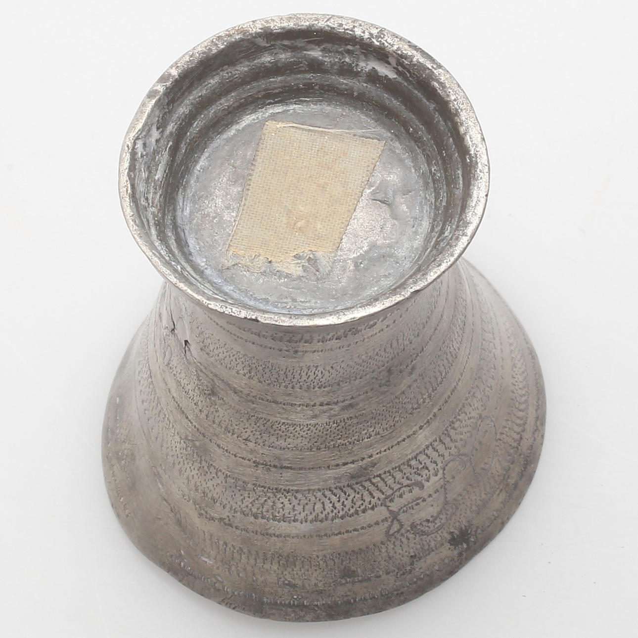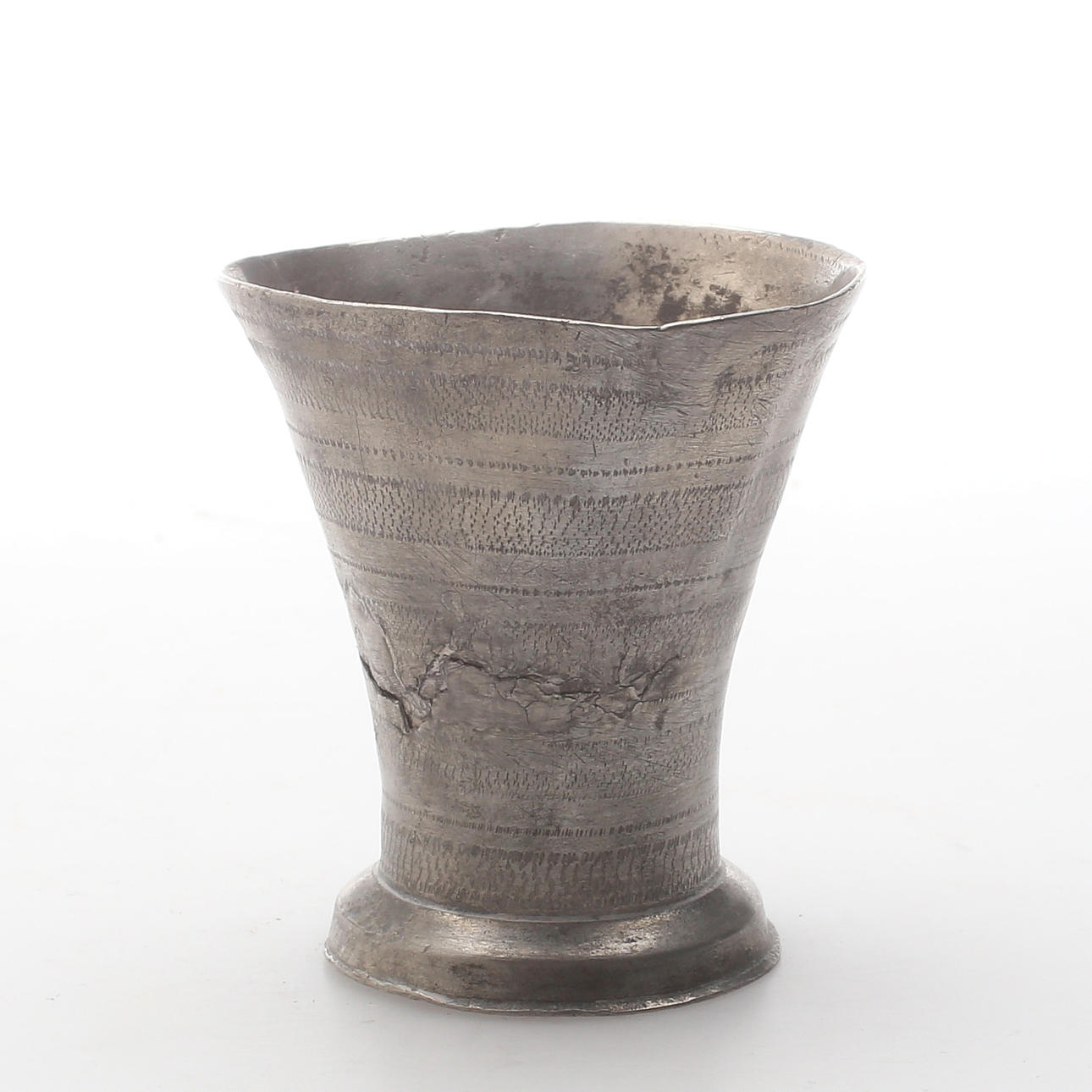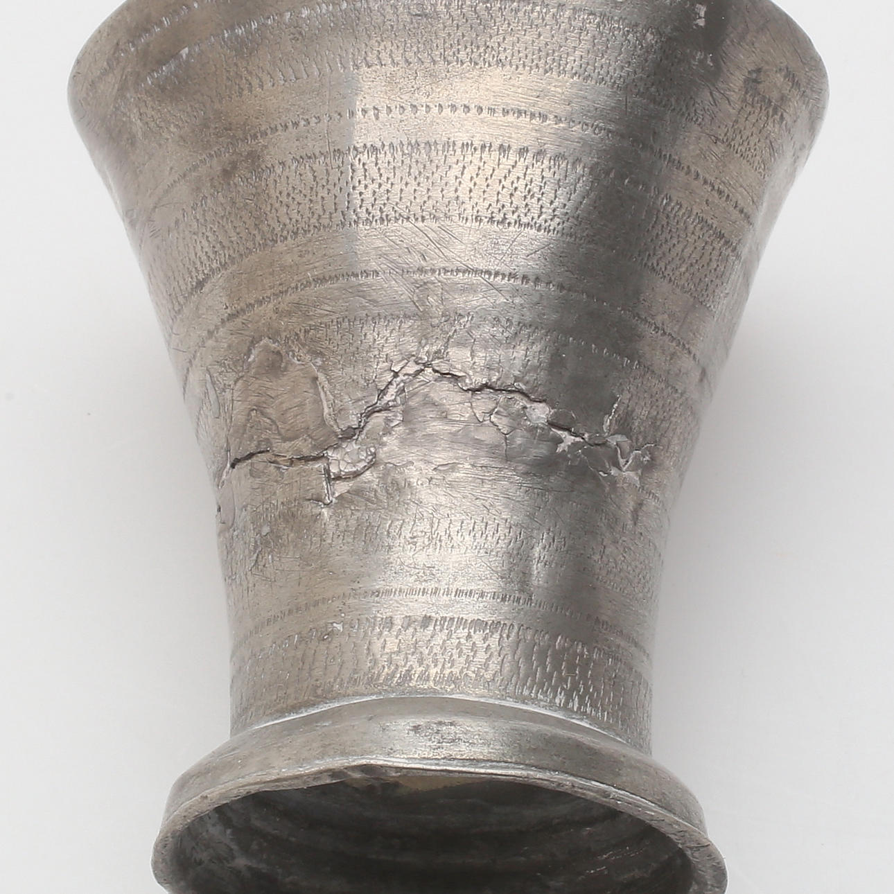Age wear, slightly uneven at top, crack on outside with repair on inside, monogram signed.
