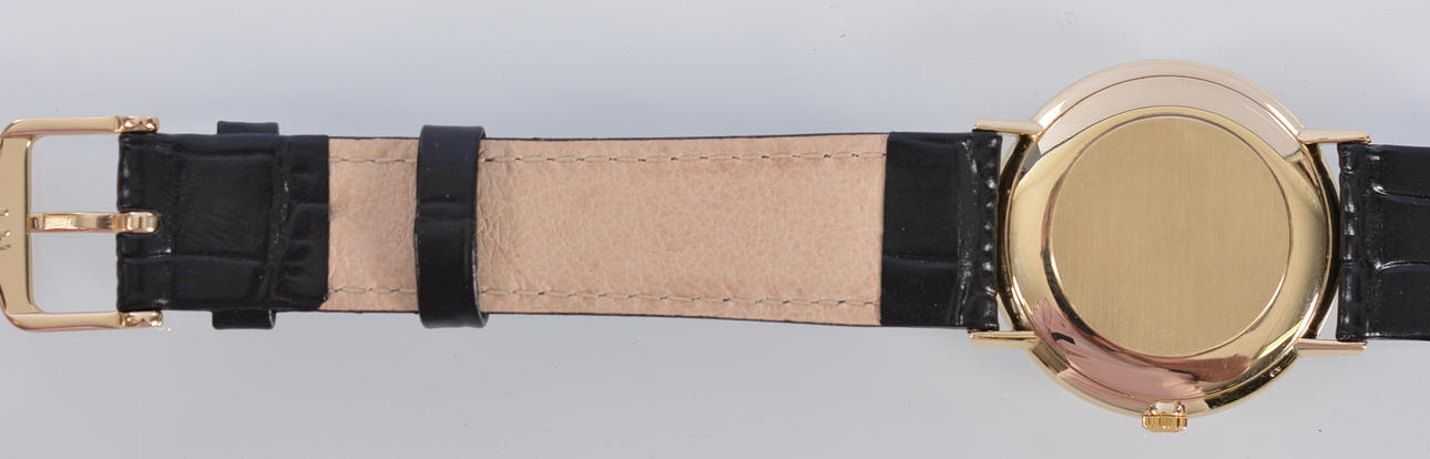 Manual, Cal 600, housing number 131.016, work number 214647XX, manufactured around 1964, diameter 33 mm. New leather strap Hirsch.