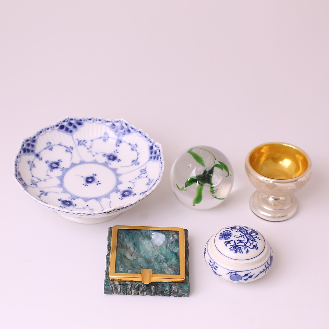 632704. PORCELAIN/GLASS/STONE OBJECTS, 5 pcs, 1900s.