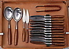Complete 5x12 table cutlery 3 salad cutlery 2 meat cutlery 1 sauce spoon 1 butter spoon, not verified 1 grappling claw, not verified.