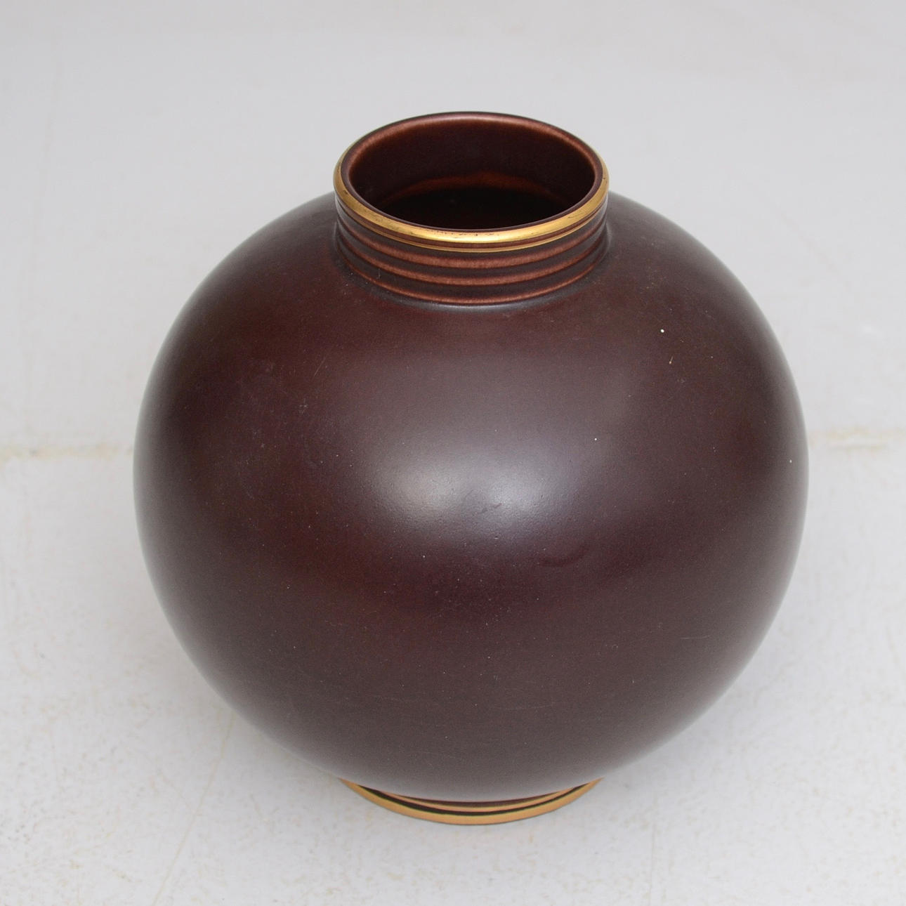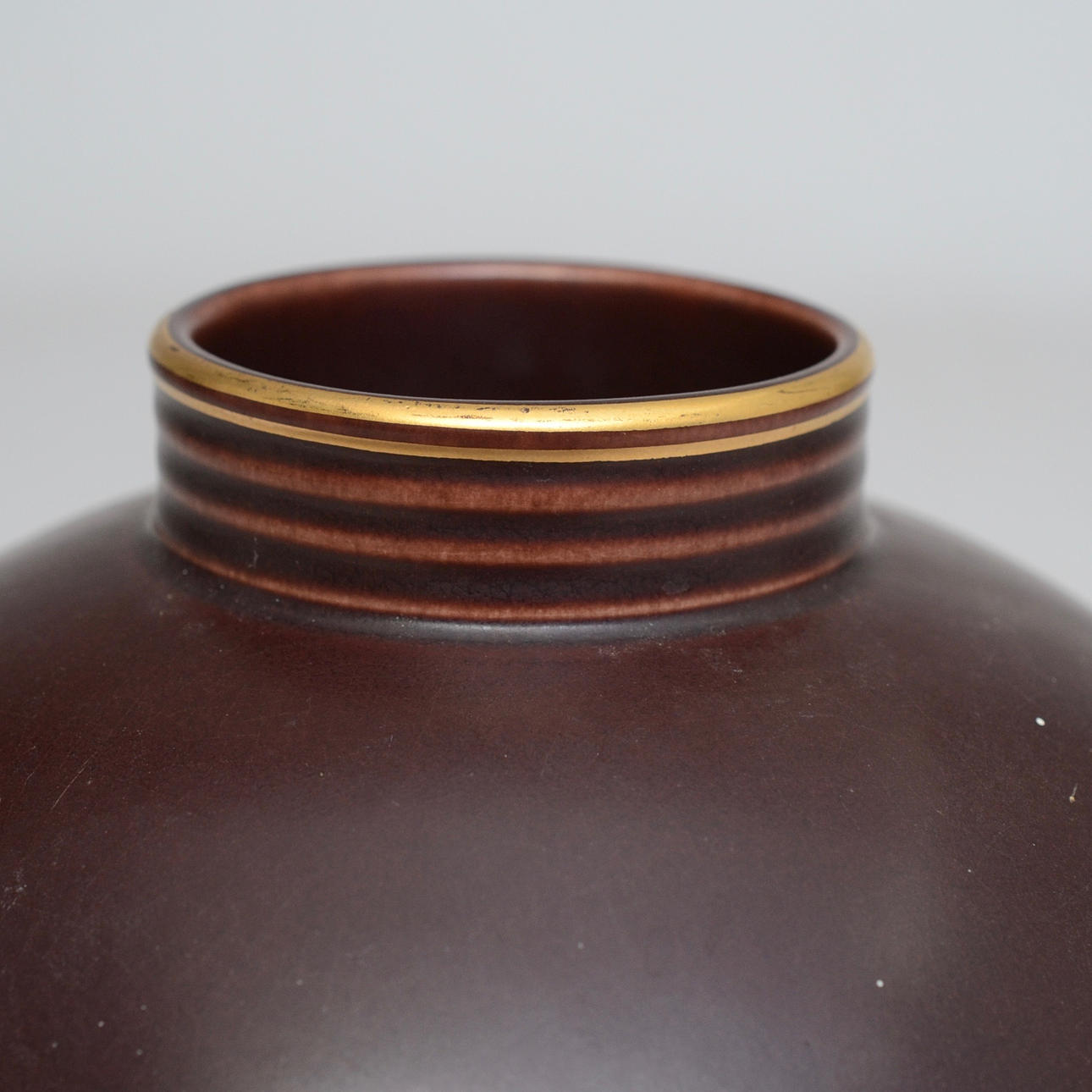 Brown glazed with gold color decoration.