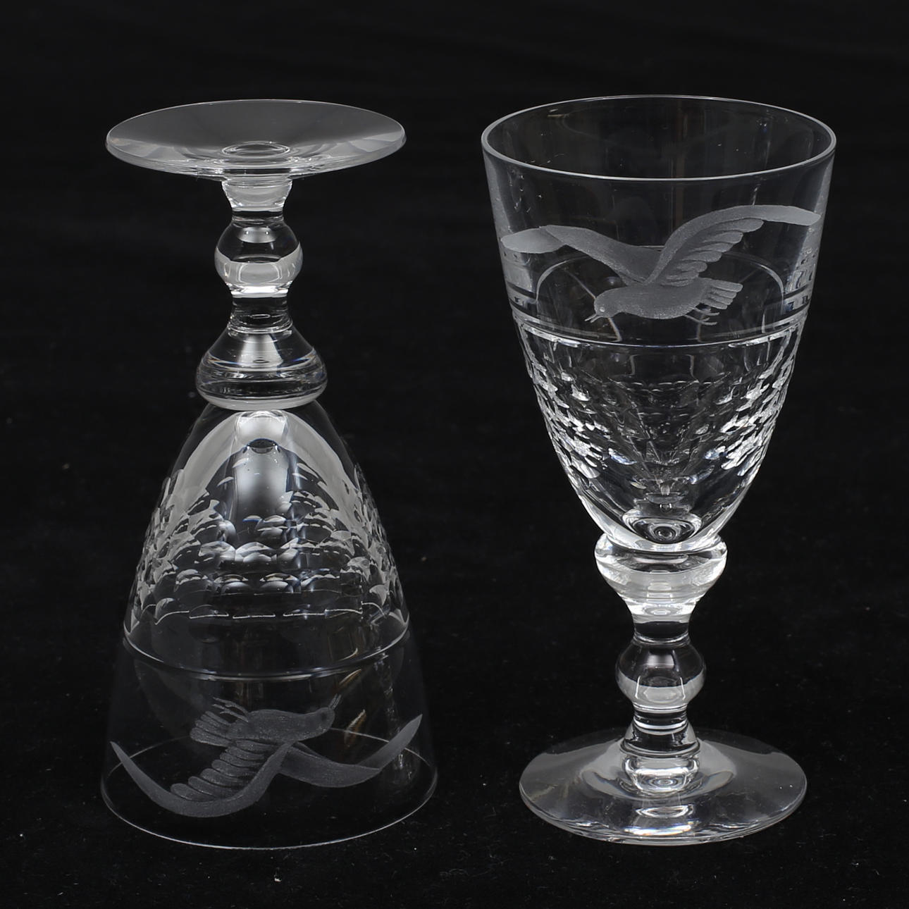 12 ground glasses with seagull decoration, height 14.5 cm.
