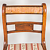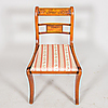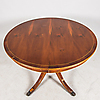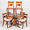 Table, 6 chairs and 2 extension leaves. The diameter of the table 107, height 74 cm and the width of the boards 50 cm.