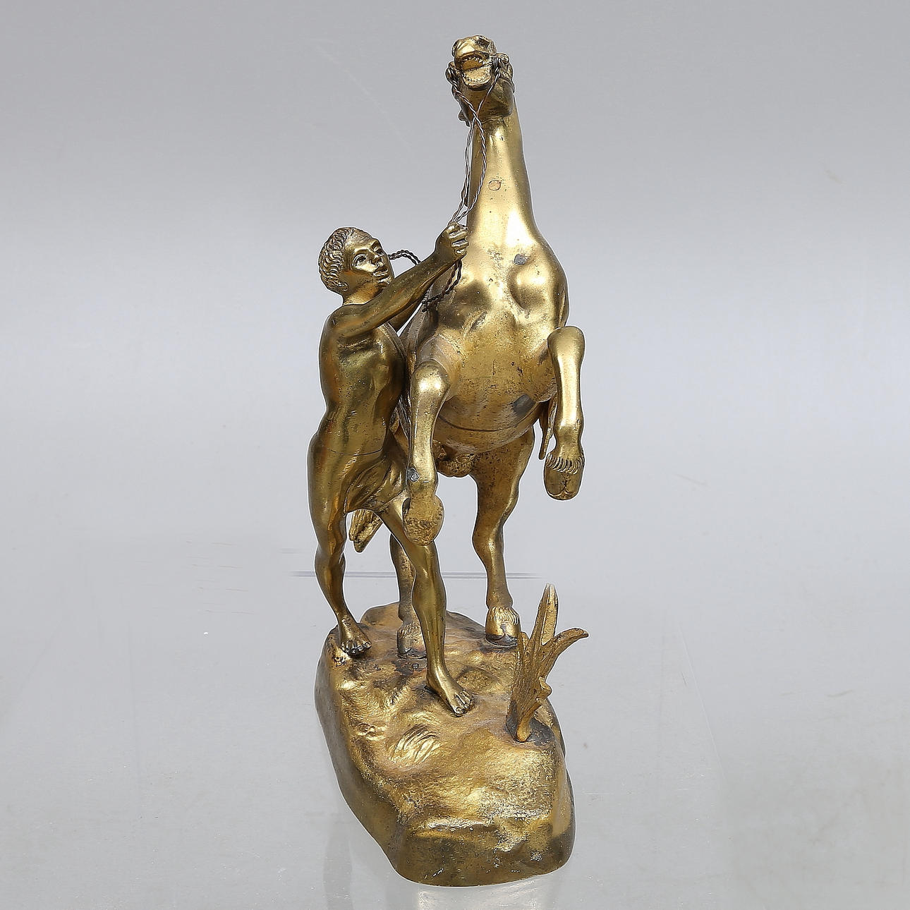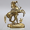 SCULPTURE, brass, man with horse.