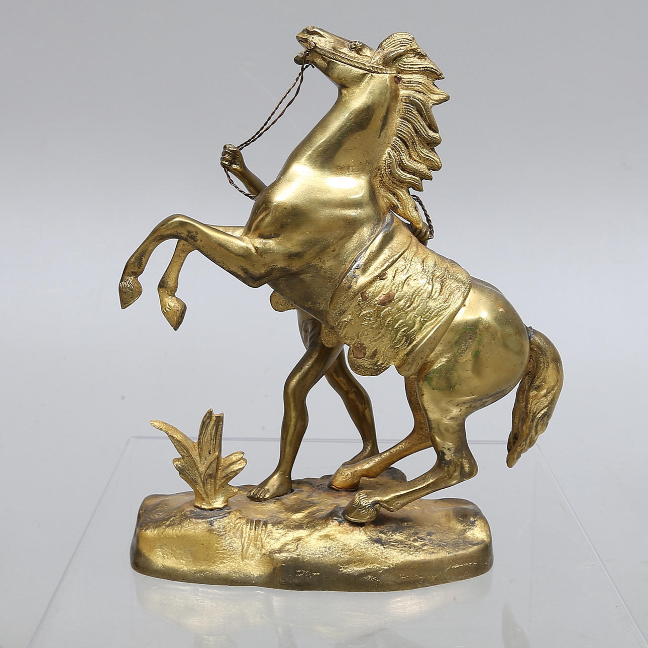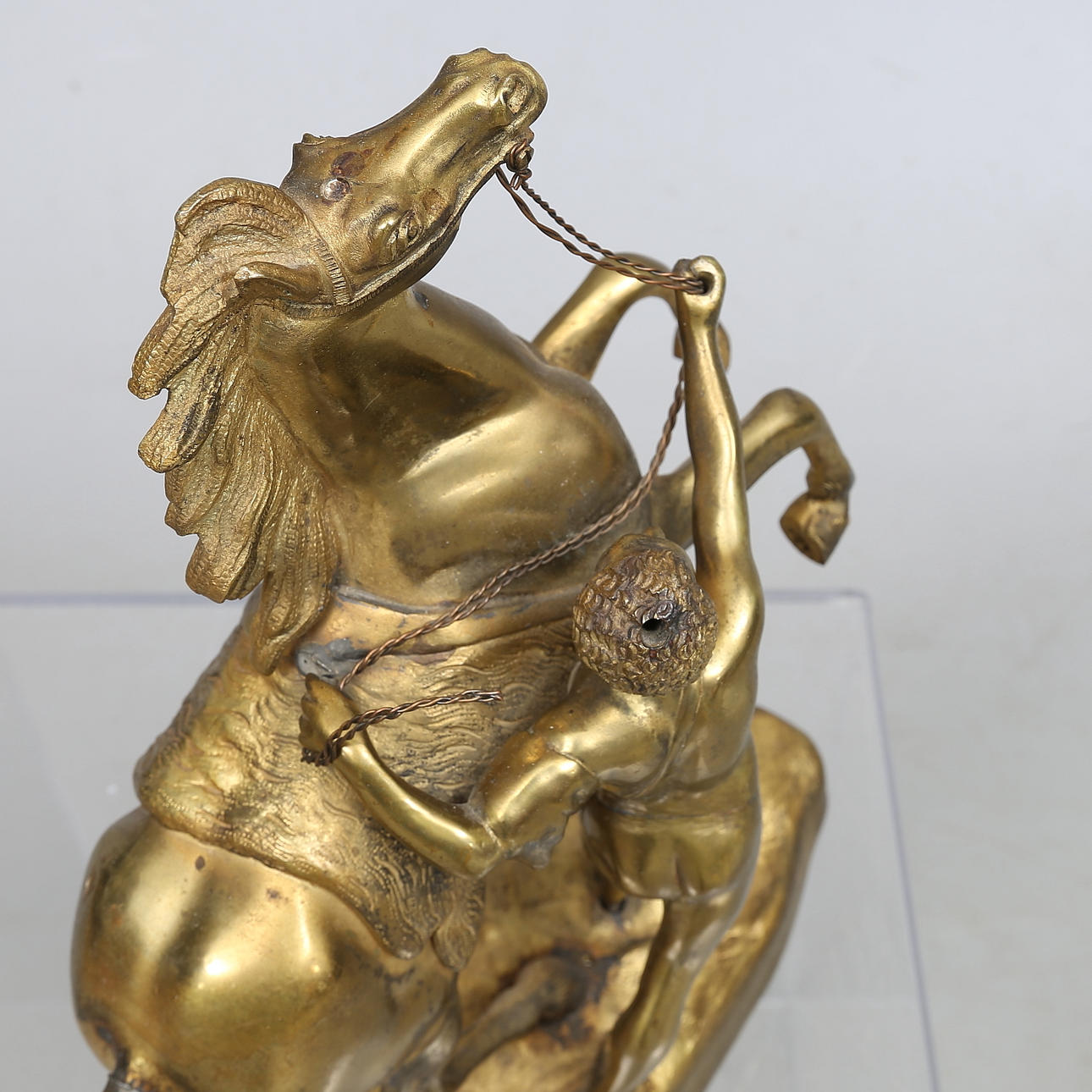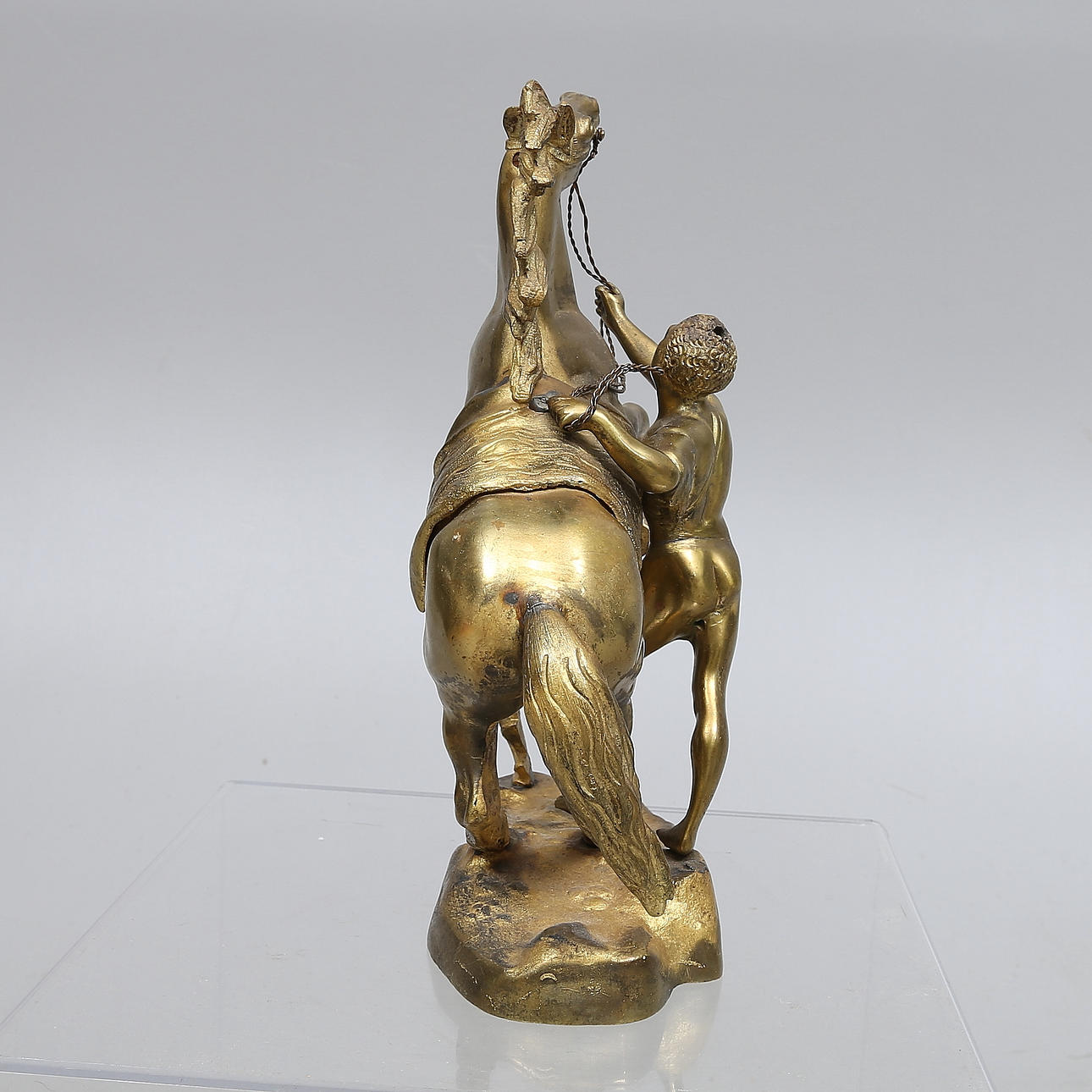 640298. SCULPTURE, brass, man with horse.