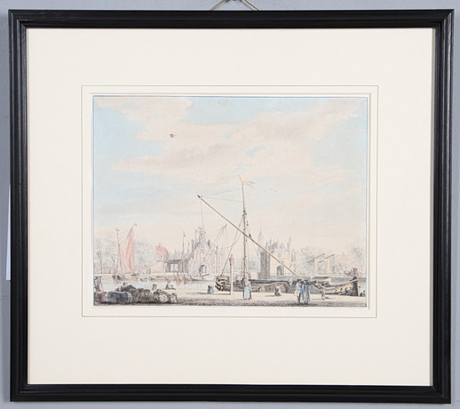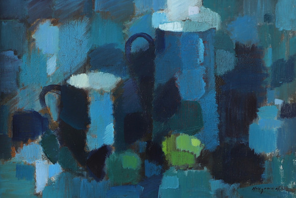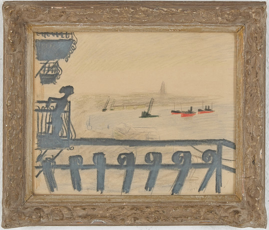 647301. ELLIS WALLIN. "Motif from the port of Grundsund", oil on Board, signed and dated -42.