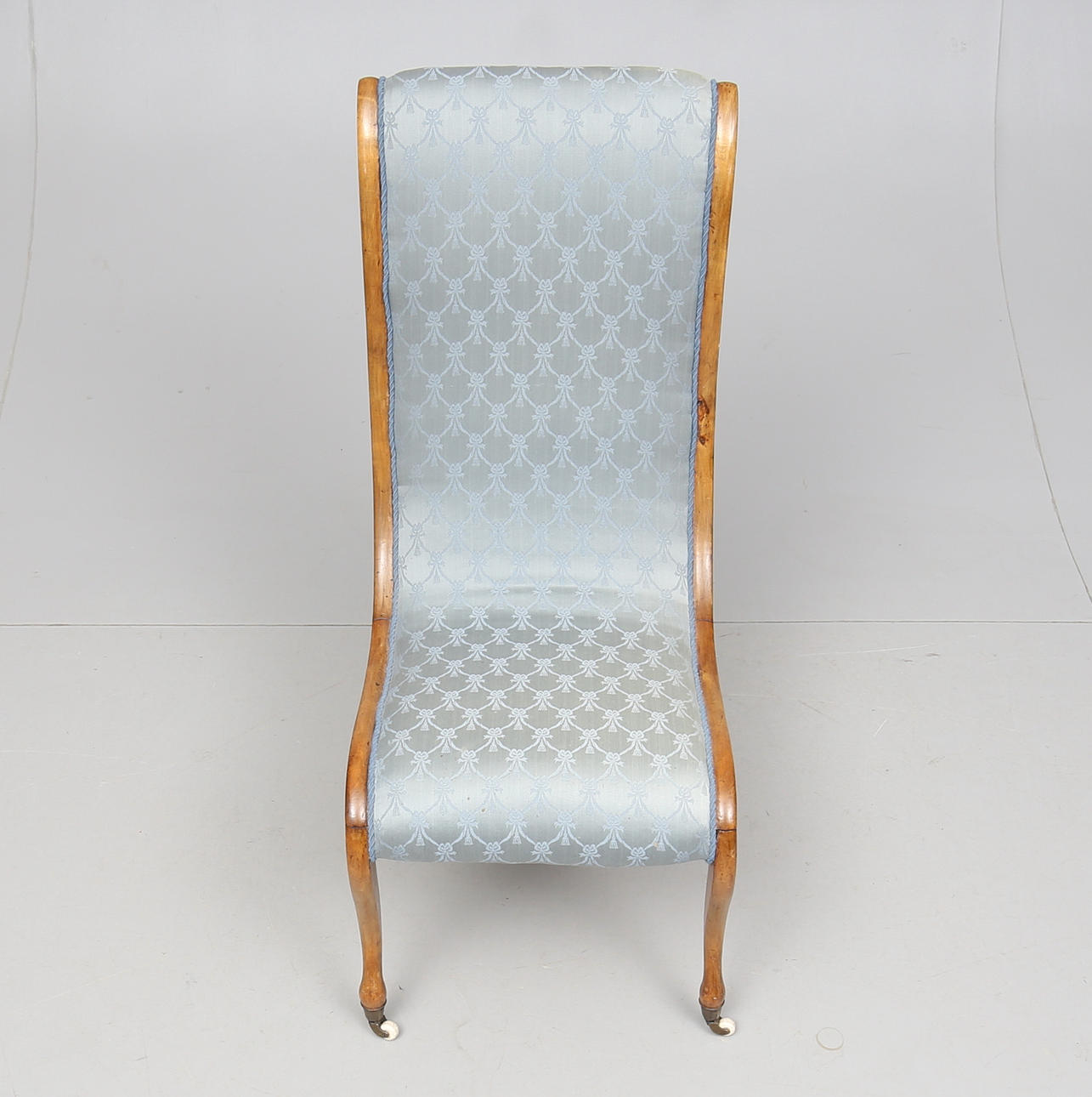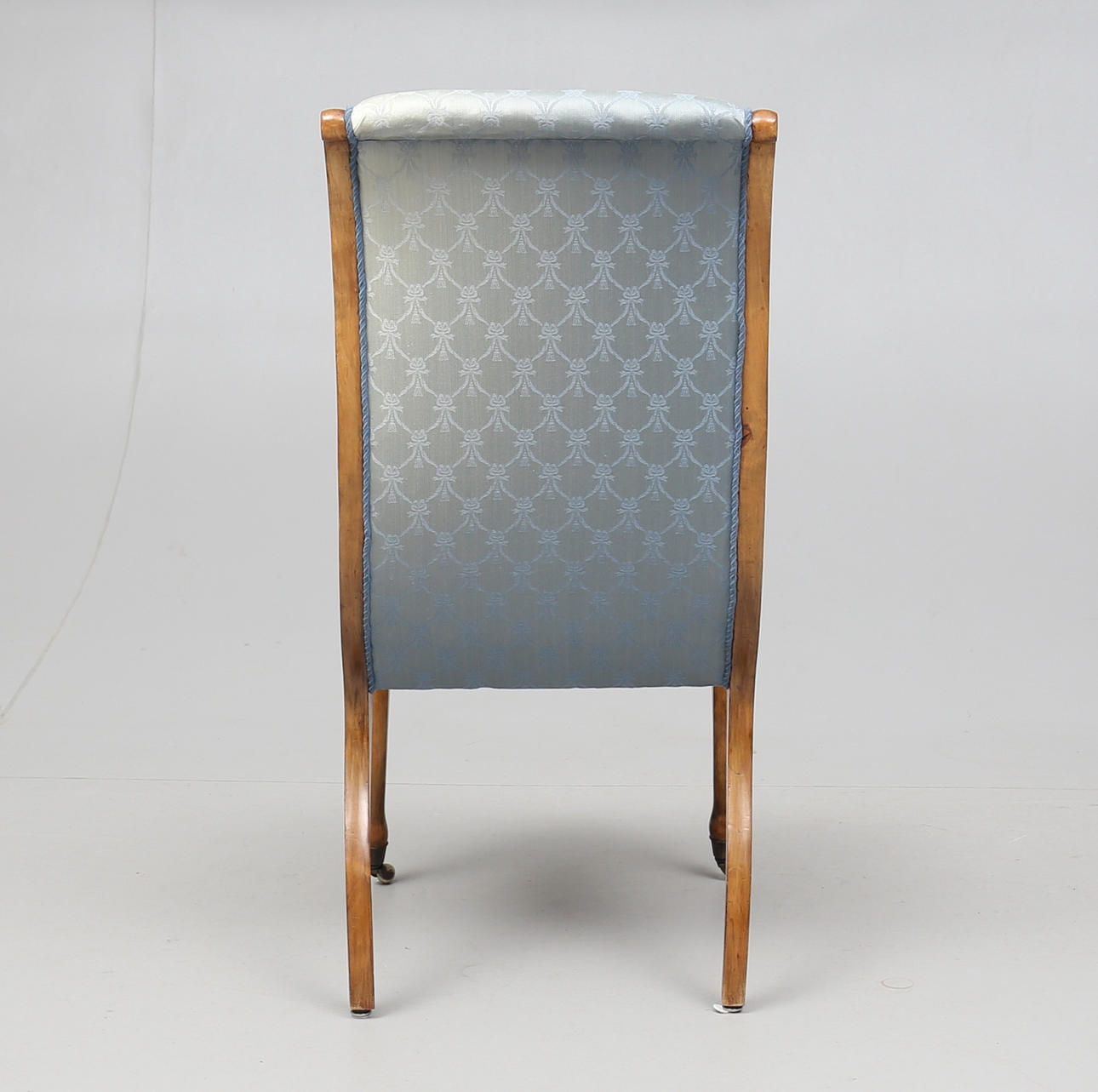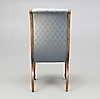 Total height approx. 101 cm. Width about 47 cm. Fixed upholstered seat. Front wheel pulleys.