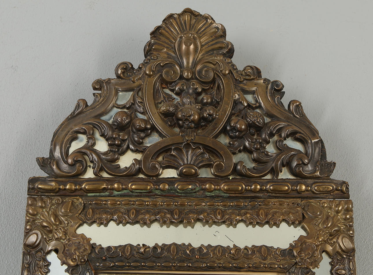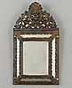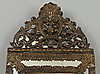Faceted glass. Frame covered with sheet metal with pressed relief decoration.