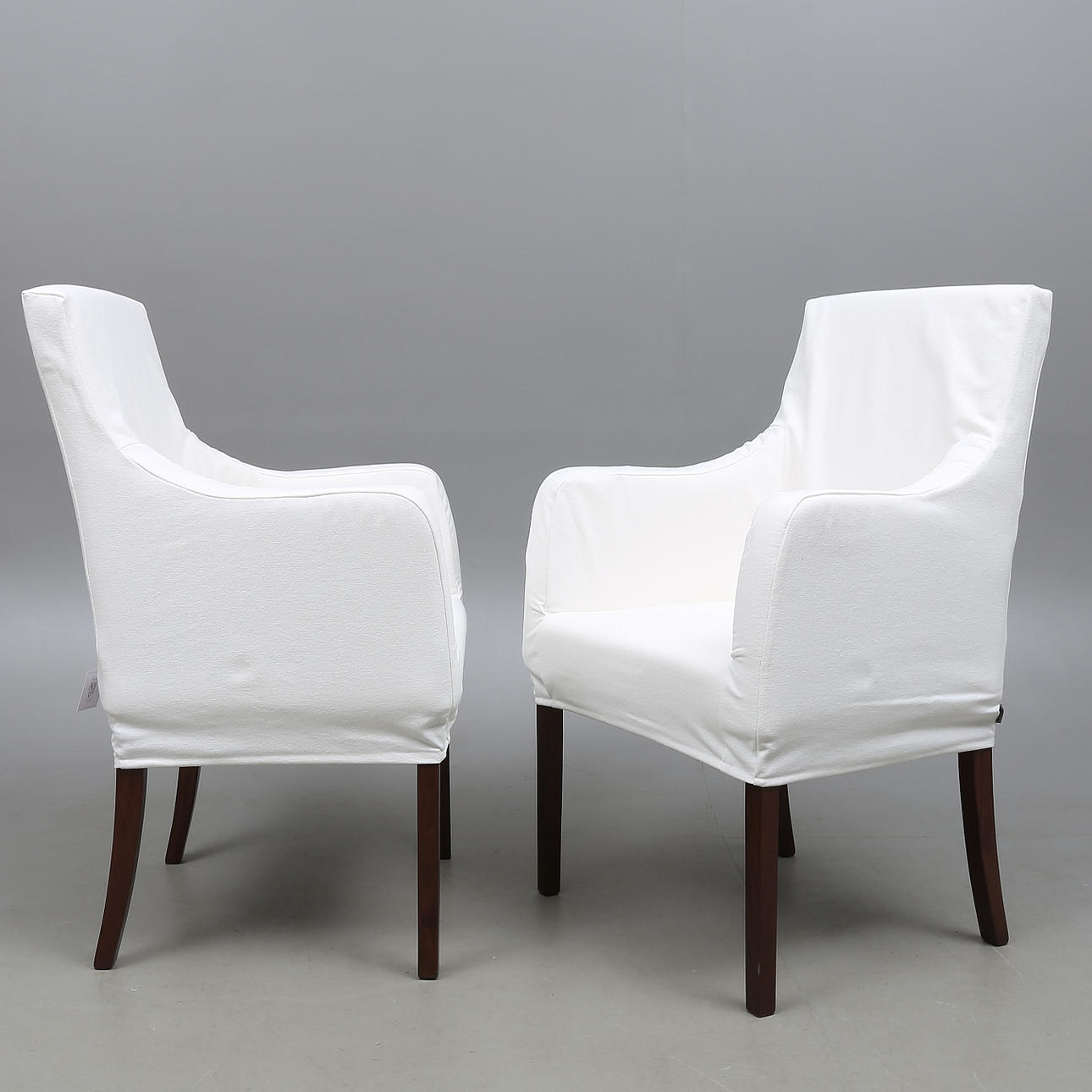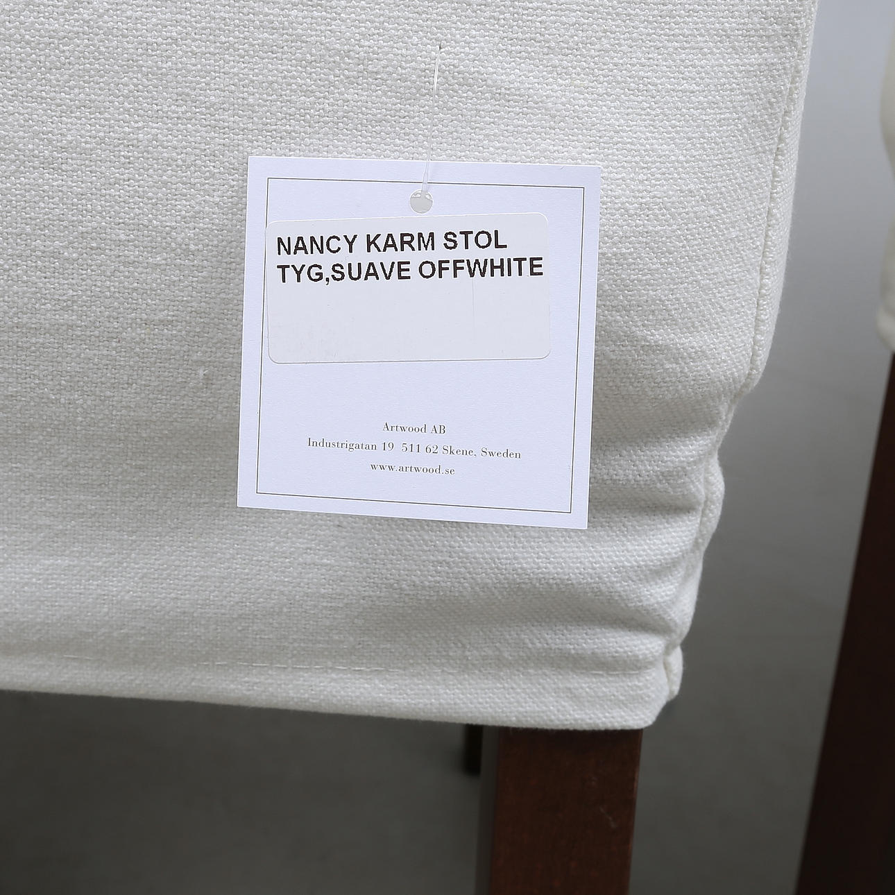 Back height 99 cm. Seat height approx. 48 cm. Width about 62 cm. White fabric upholstery.