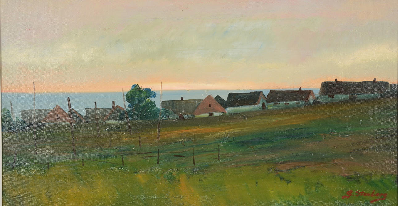 Landscape with houses, signed G Stenberg, 34x65 cm.