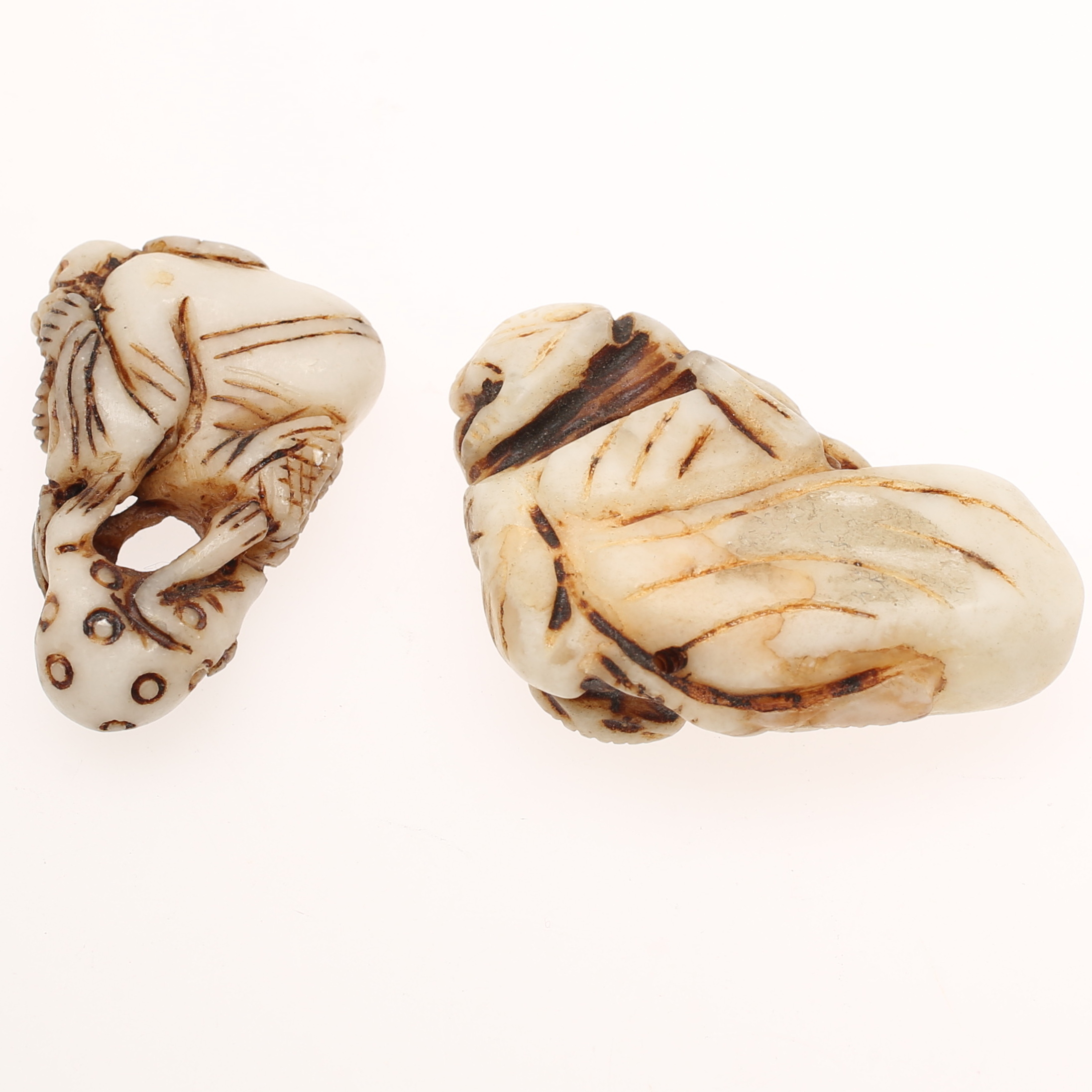667177. NETSUKE, 2 pieces, stone. Asia.