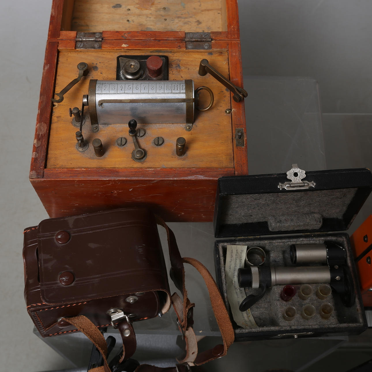 Technical instruments, mostly with accompanying case / case.