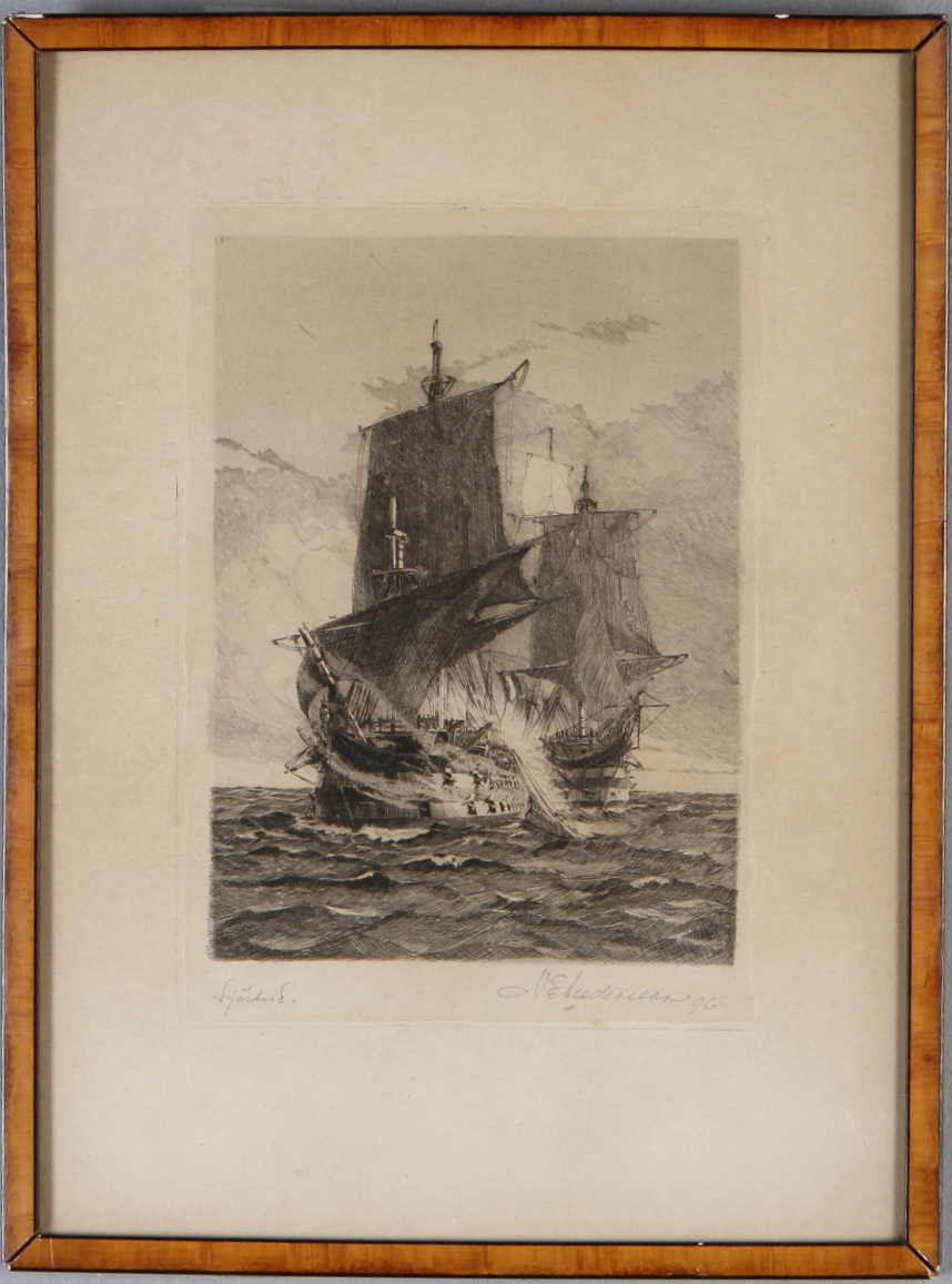 67774. NILS ELIAS ANCKERS ANDERSSON. Etching, marine motif, signed NE Andersson 96.